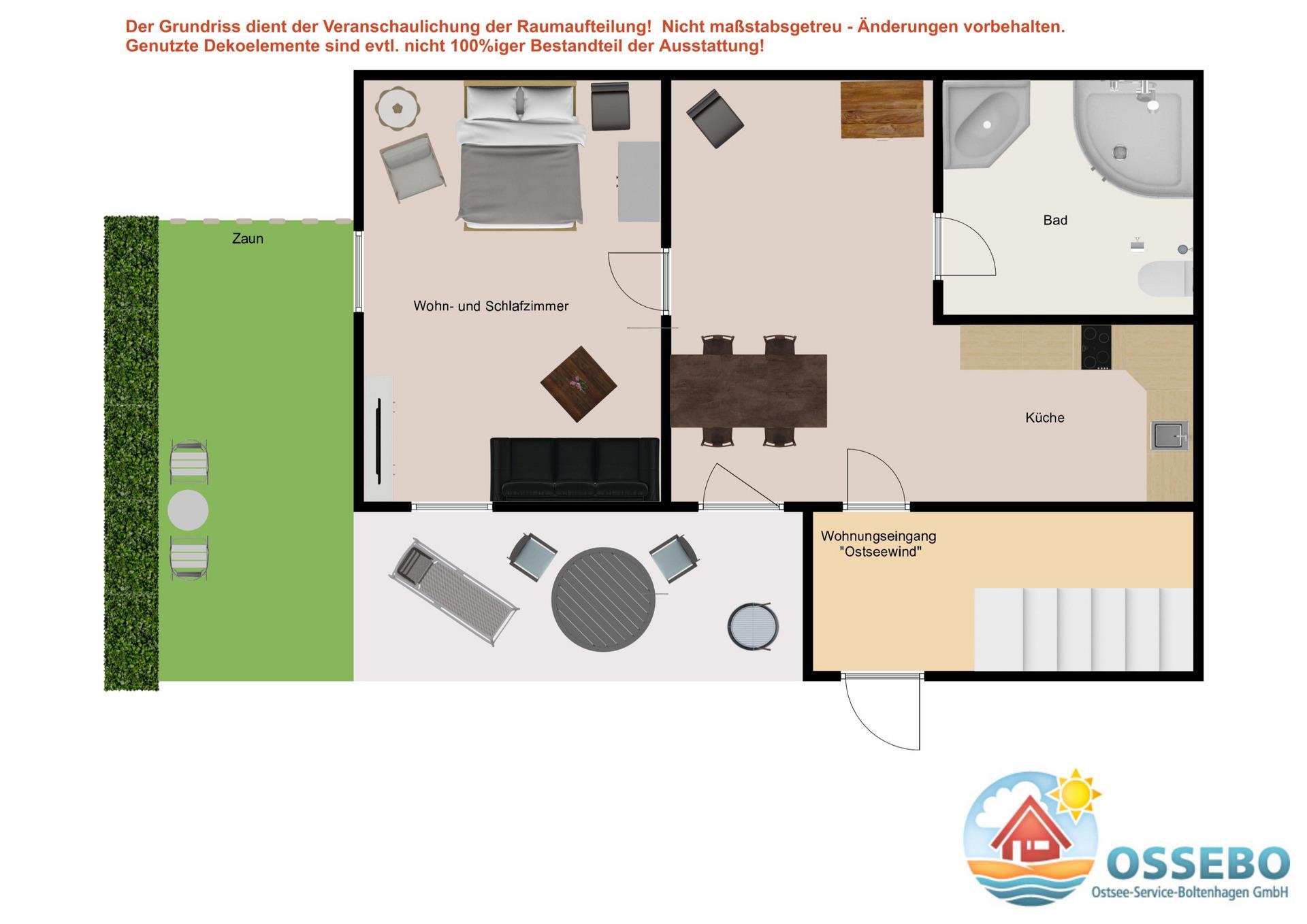Die liebevoll eingerichtete 1-Zimmer-Wohnung im Erdgeschoss bietet Ihnen auf etwa 35qm Wohnfläche eine tolle Aufenthaltsmöglichkeit für Ihren Ostseeurlaub zu Zweit.