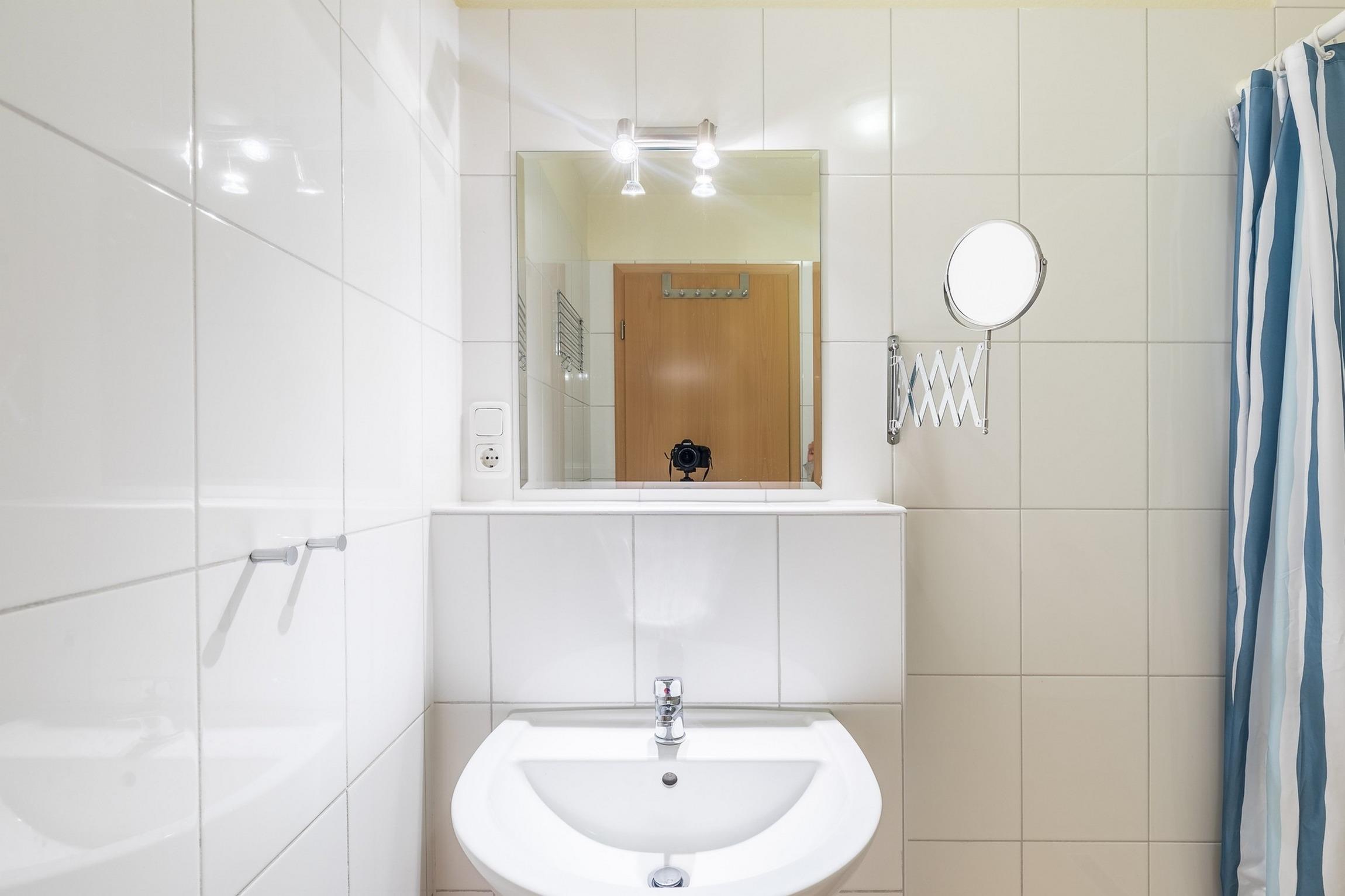 Im separaten Badezimmer befindet sich eine bodengleiche Dusche und das WC.