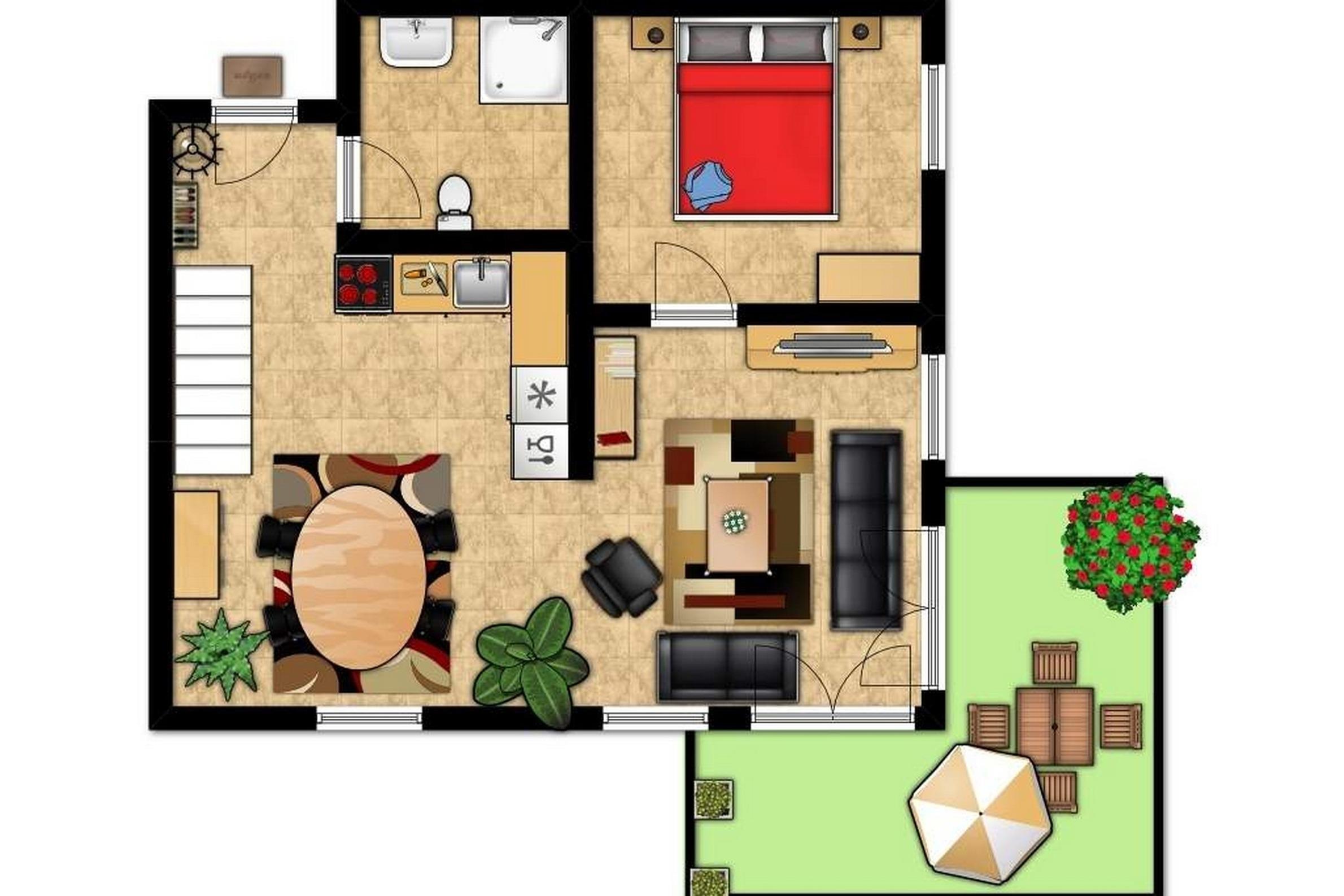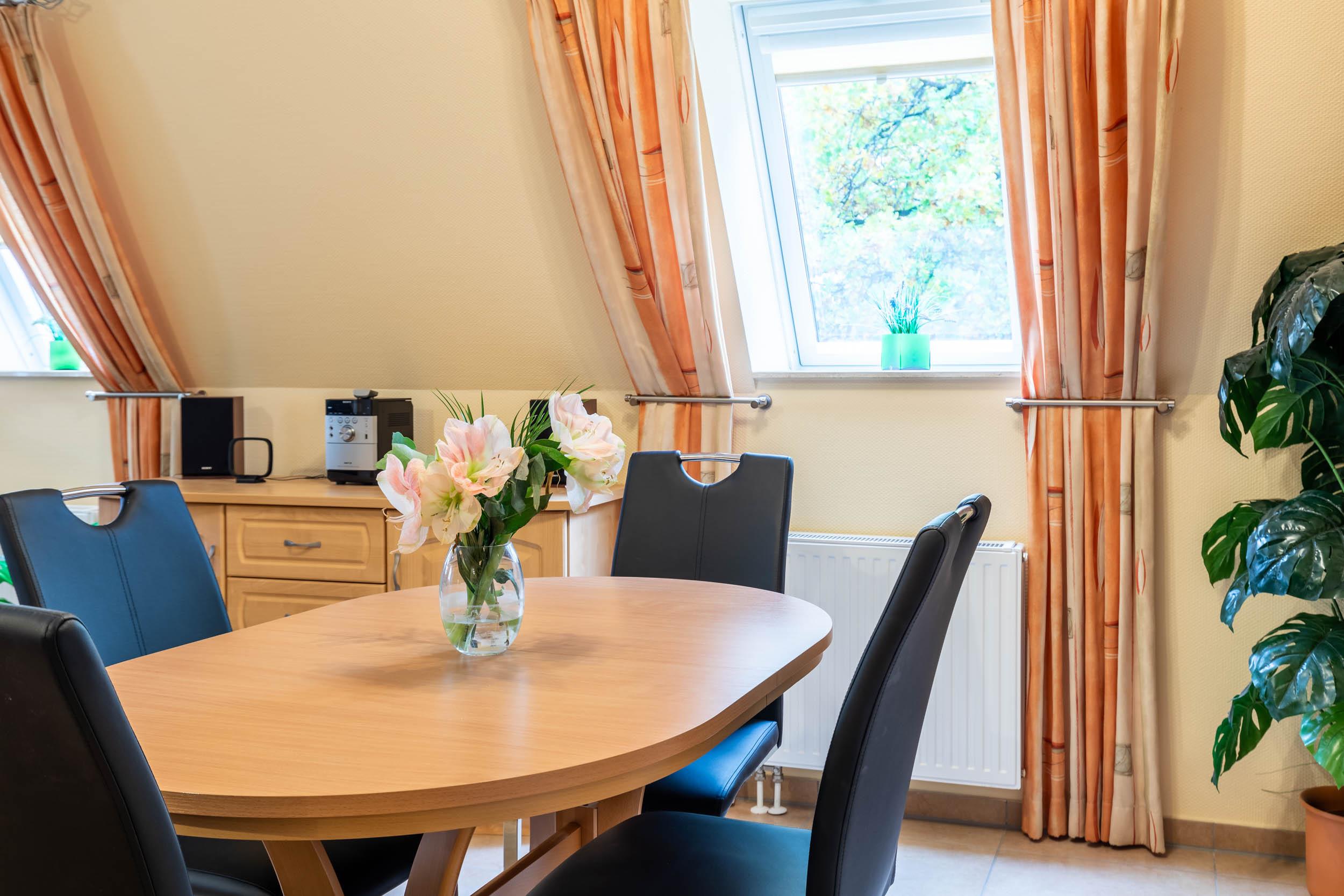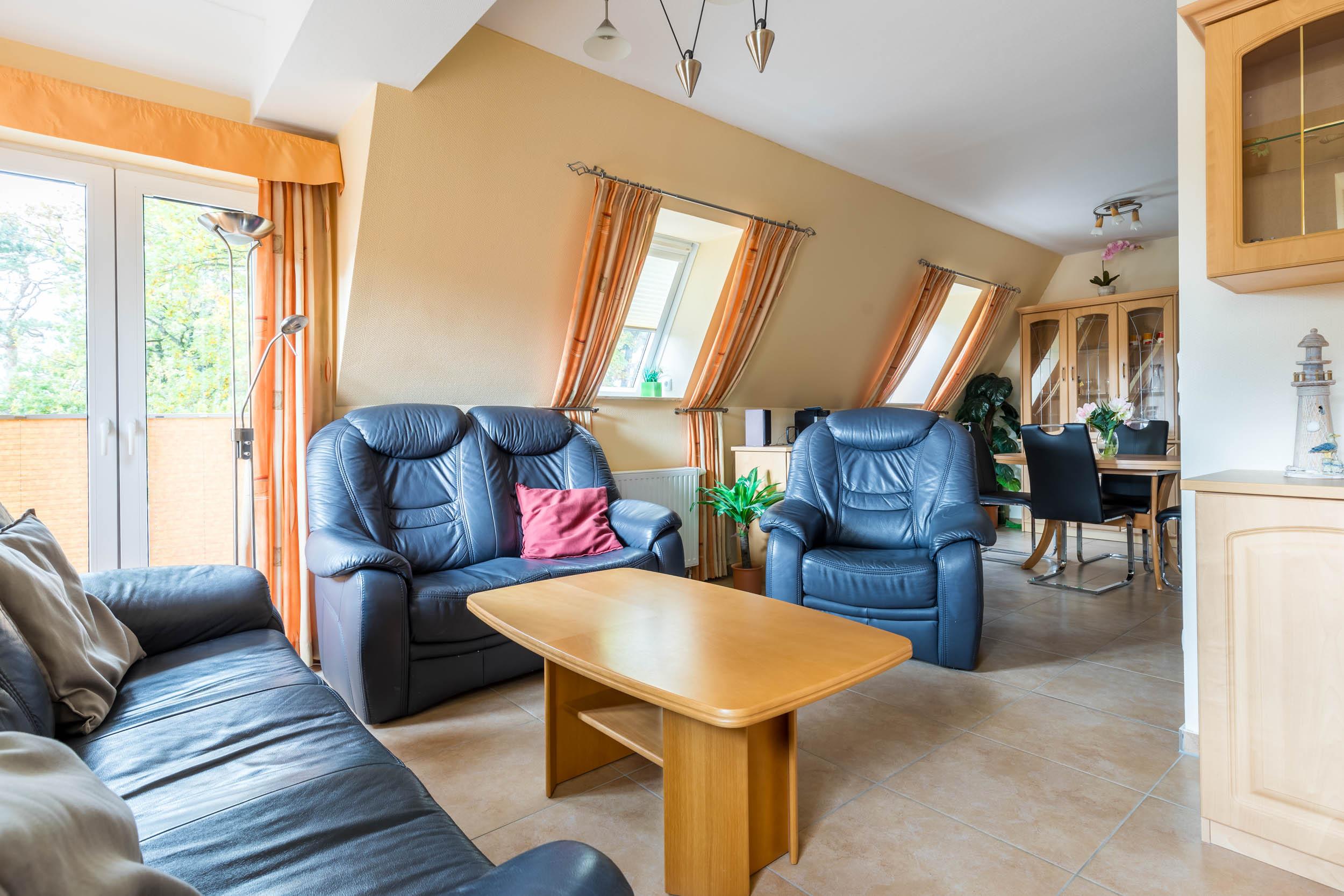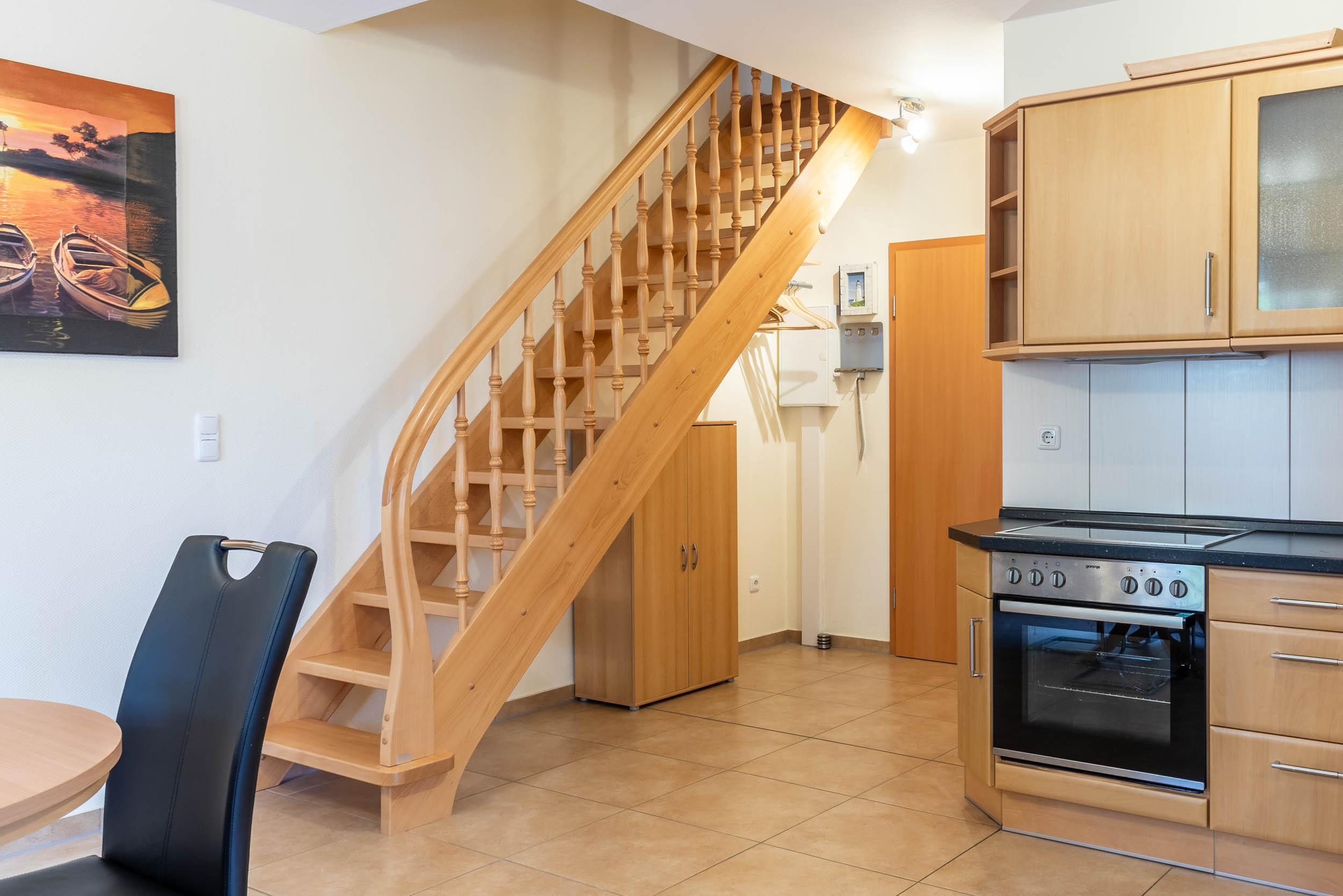 Die rund 70qm große 3-Zimmer-Wohnung befindet sich im 2.OG und erstreckt sich mit ihrer Ausstattung für 4 Gäste + 1 Kleinkind über zwei Wohnebenen.