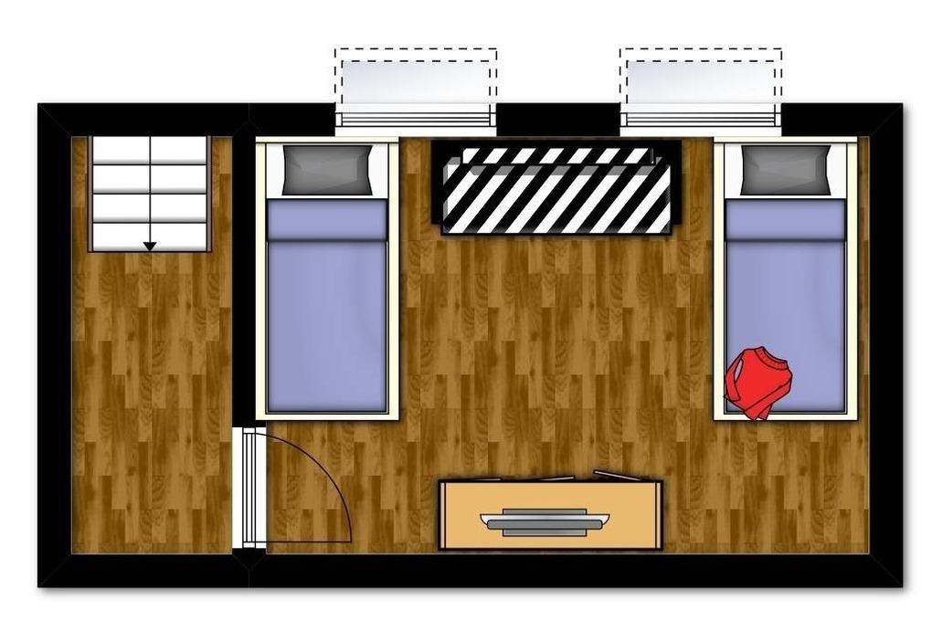 Das zweite Schlafzimmer/ Kinderzimmer in der 2. Ebene, im DG ist mit zwei Einzelbetten und zusätzlicher Schlafcouch sowie ebenfalls einem eigenen Flatscreen-TV ausgestattet.