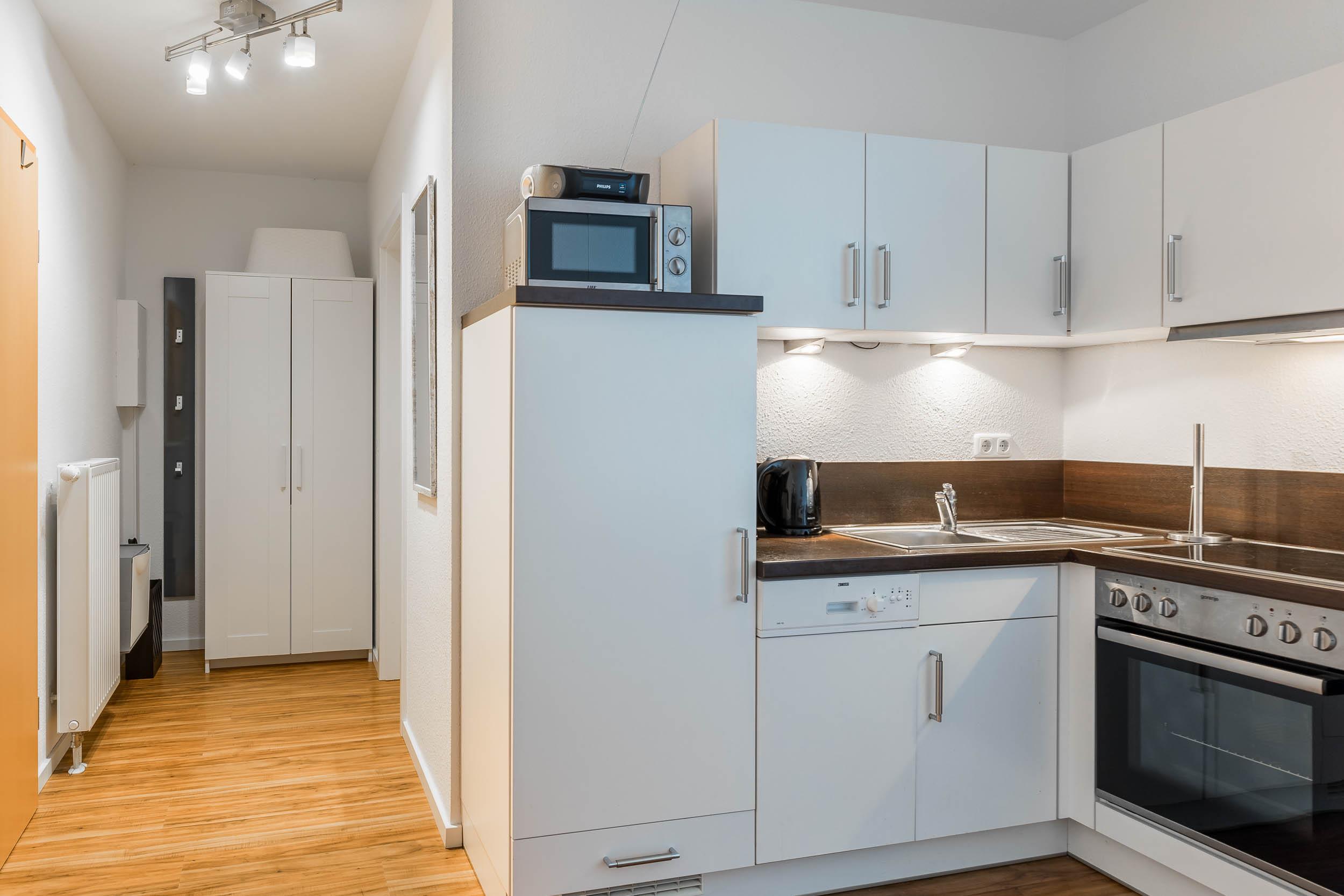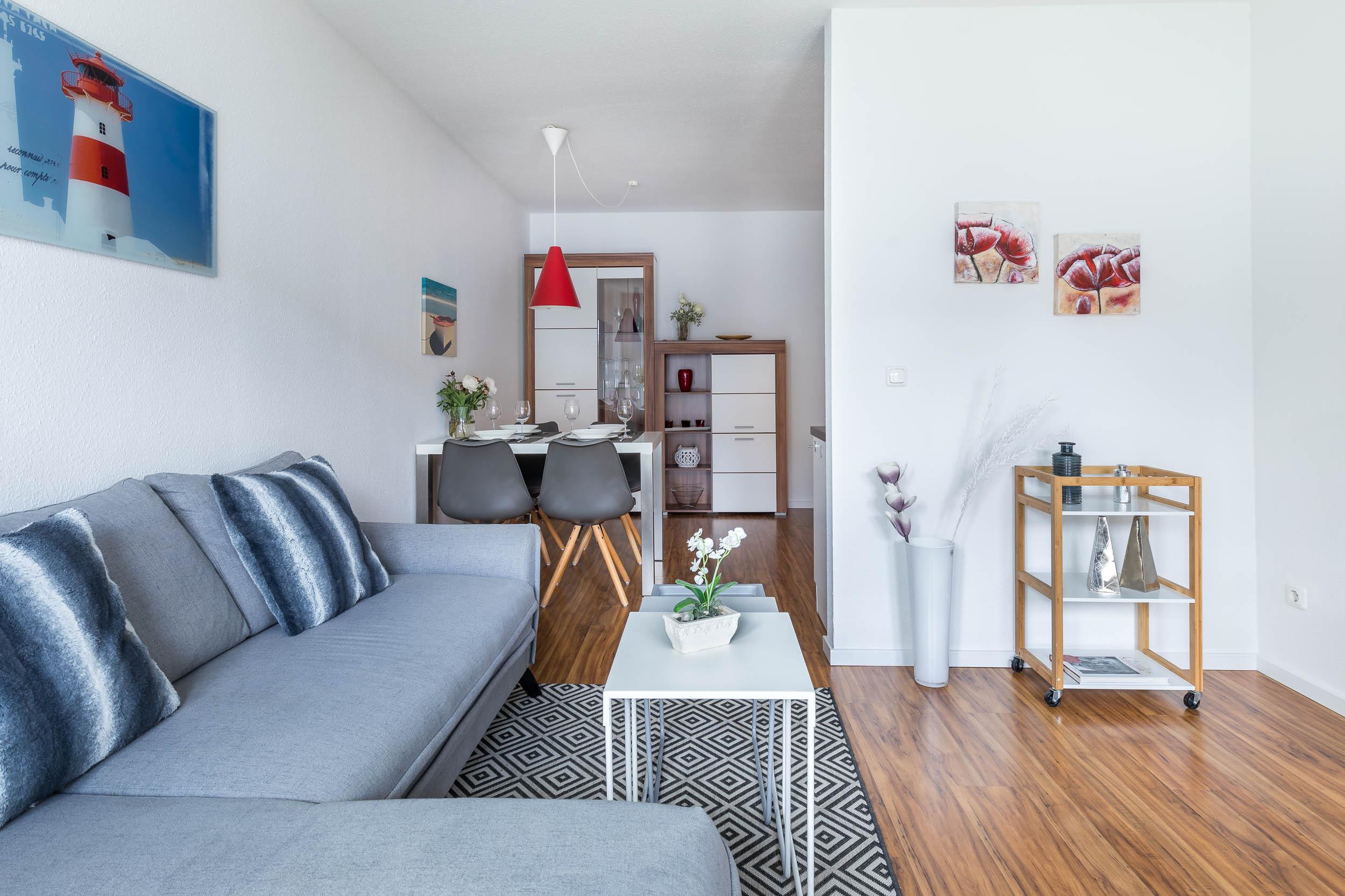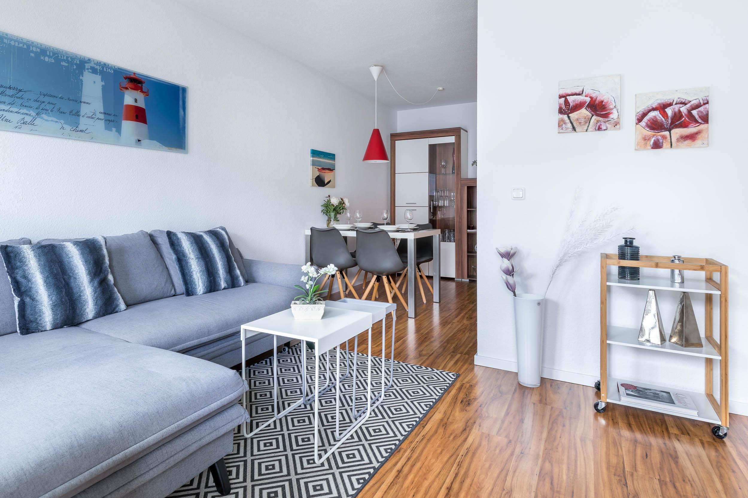 Geschmackvoll eingerichtet ist diese 2-Zimmer-Wohnung im 1.OG mit hauseigenem Fahrstuhl. Hier können sich zwei bis drei Gäste entspannt wohlfühlen.