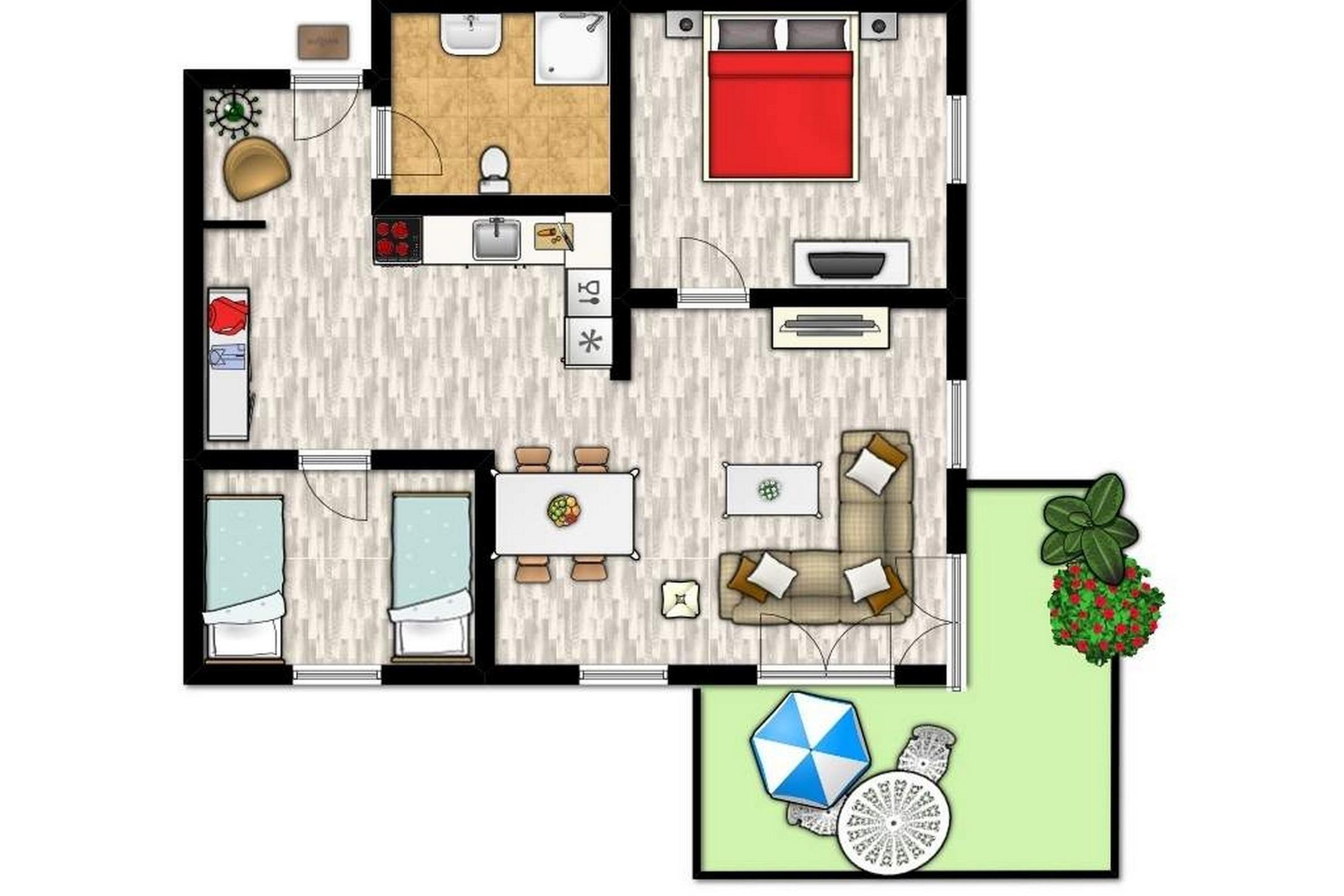 Diese geschmackvoll und familienfreundlich eingerichtete 3-Zimmer-Wohnung im 1.OG wartet mit einer Fläche von etwa 56 m² auf und bietet eine Ausstattung bis 4 Personen.