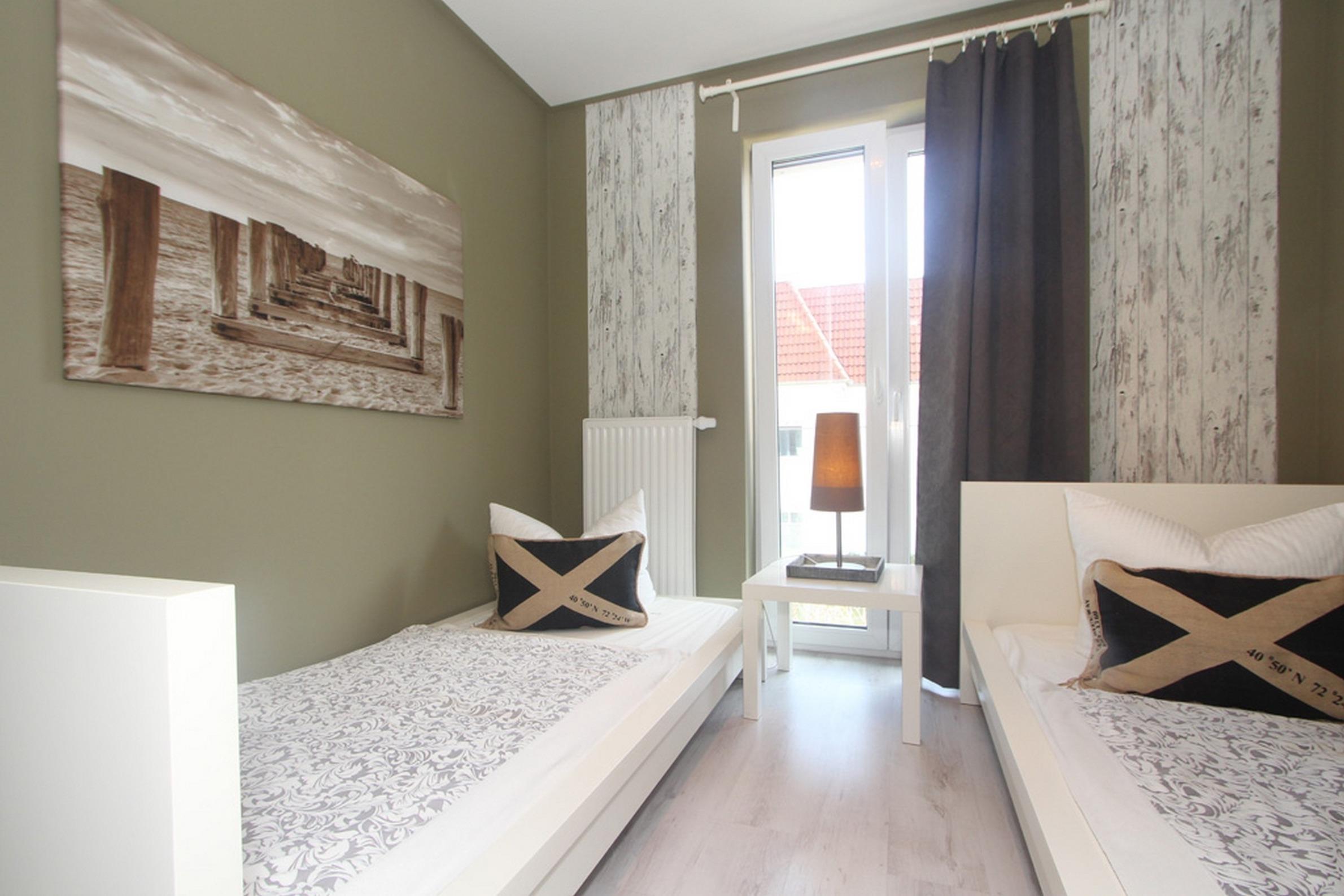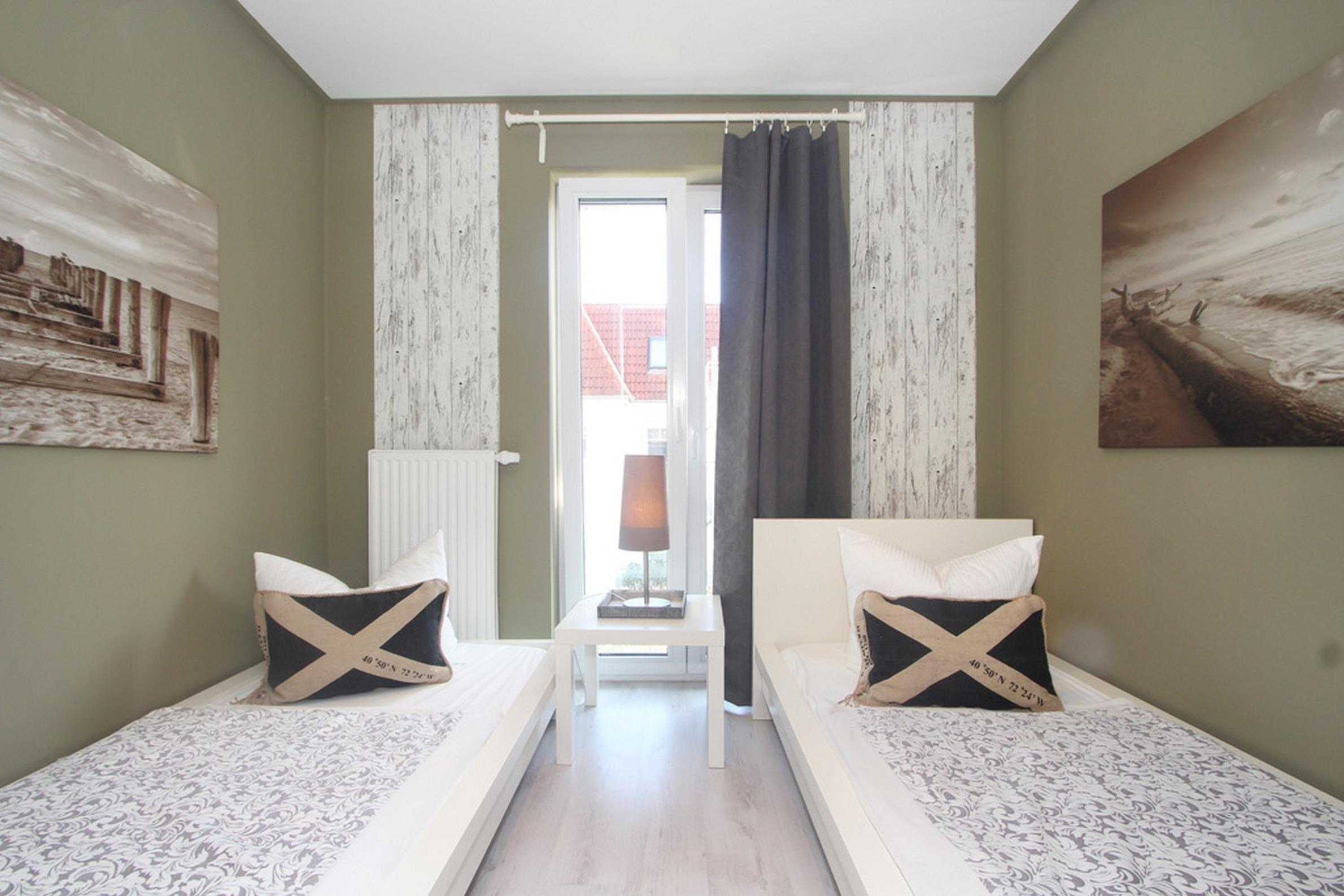 Die modern eingerichtete Wohnung 2 Schlafzimmer. Während Sie im ersten Schlafzimmer ein Doppelbett erwartet, finden Sie im zweiten Schlafzimmer zwei Einzelbetten vor.