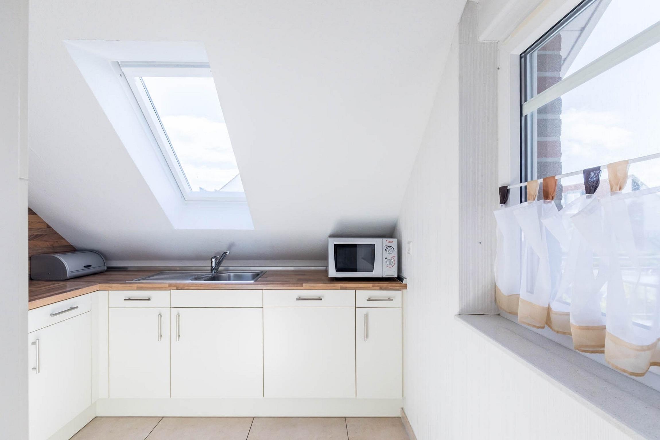 In der Küche befinden sich ein Herd/ Backofen, eine Mikrowelle, ein Geschirrspüler, ein Kühlschrank und nützliche Elektrokleingeräte wie Kaffeemaschine, Toaster usw.