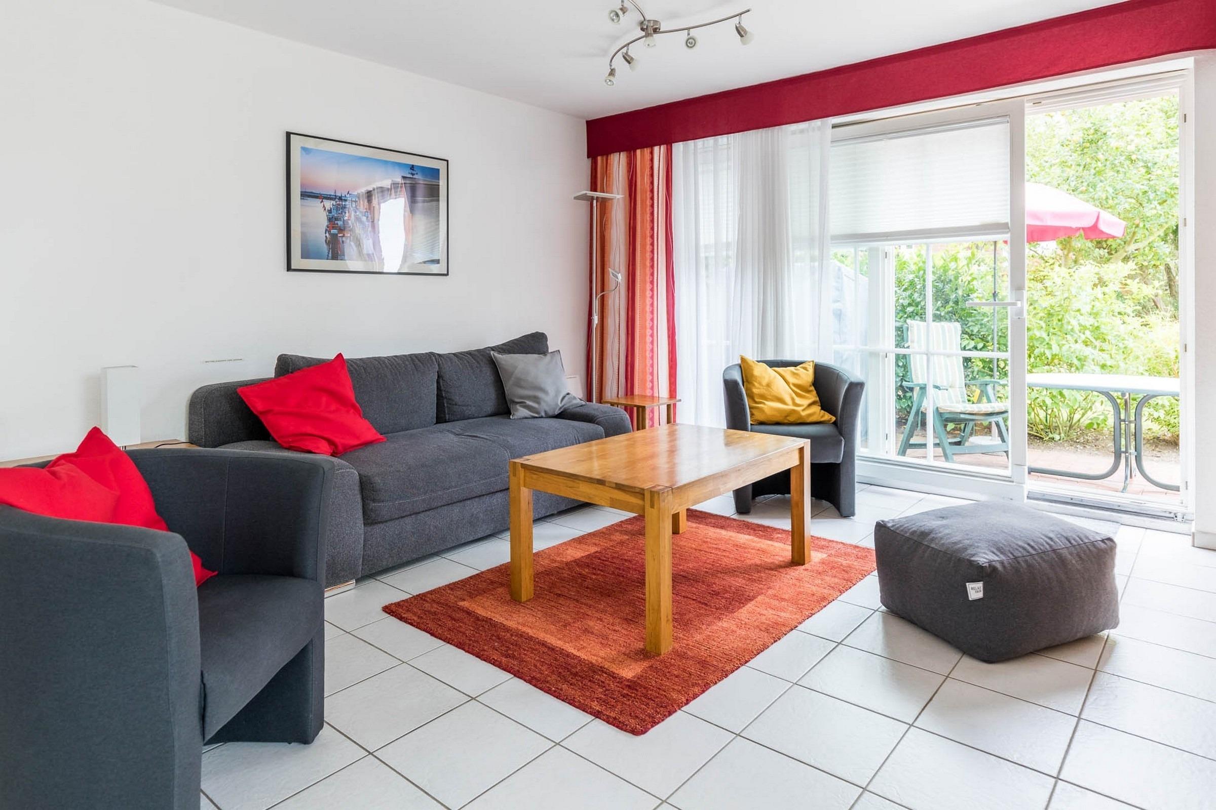Der ca. 30 qm große Wohn- und Essbereich ist komfortabel möbliert.