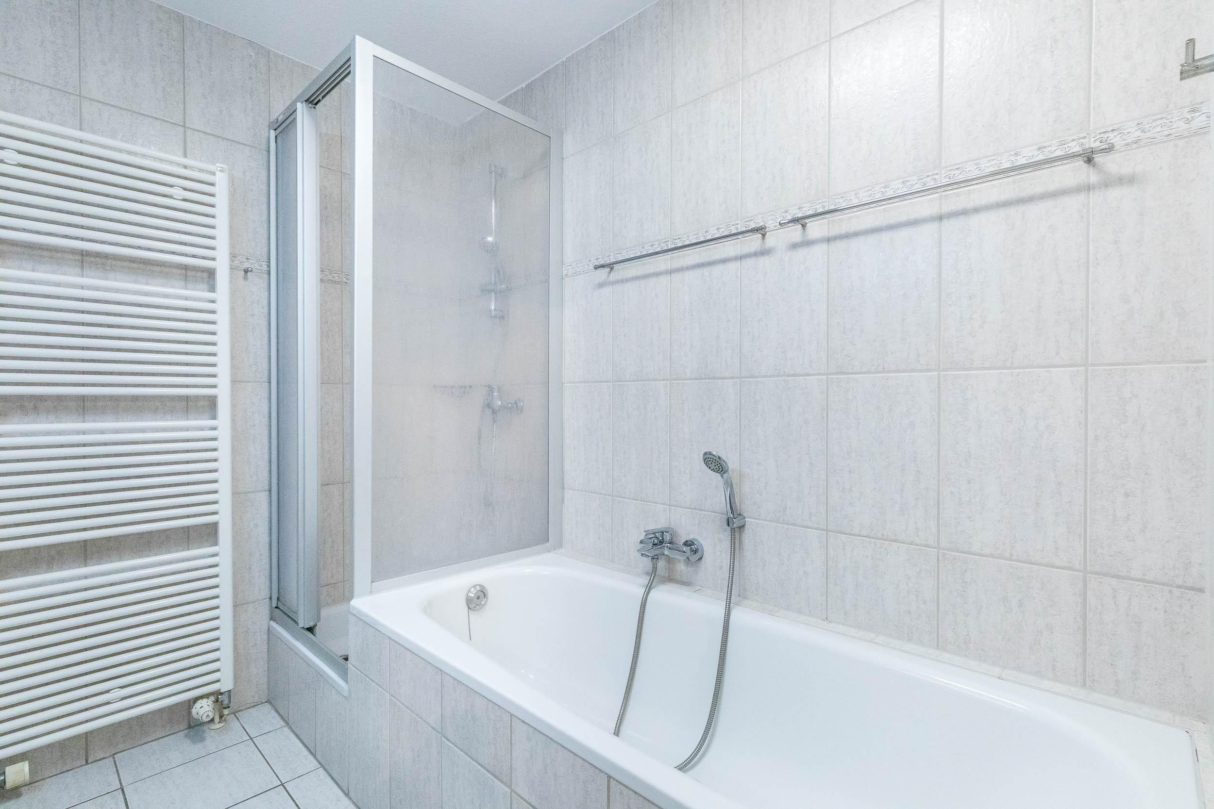 Die Wohnung verfügt über ein geräumiges, 6 qm großes, Vollbad mit WC, Dusche und einer großen Badewanne.