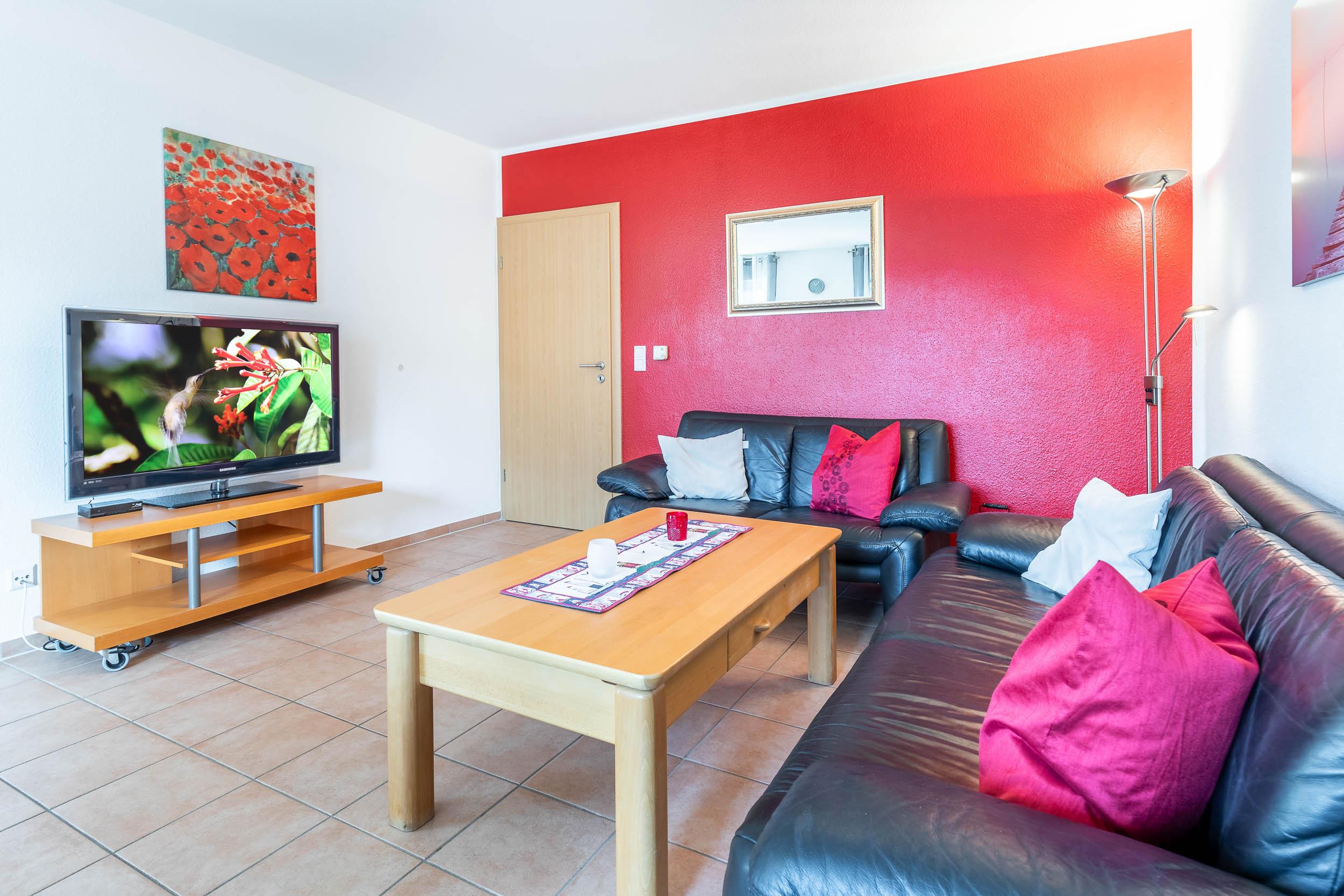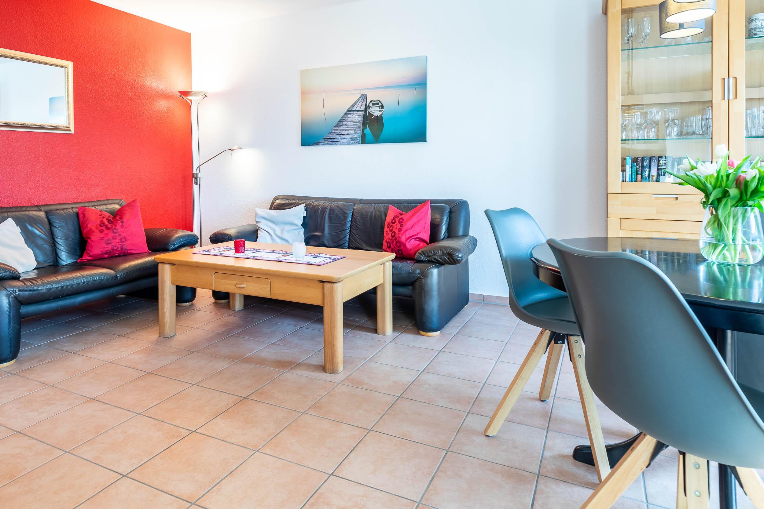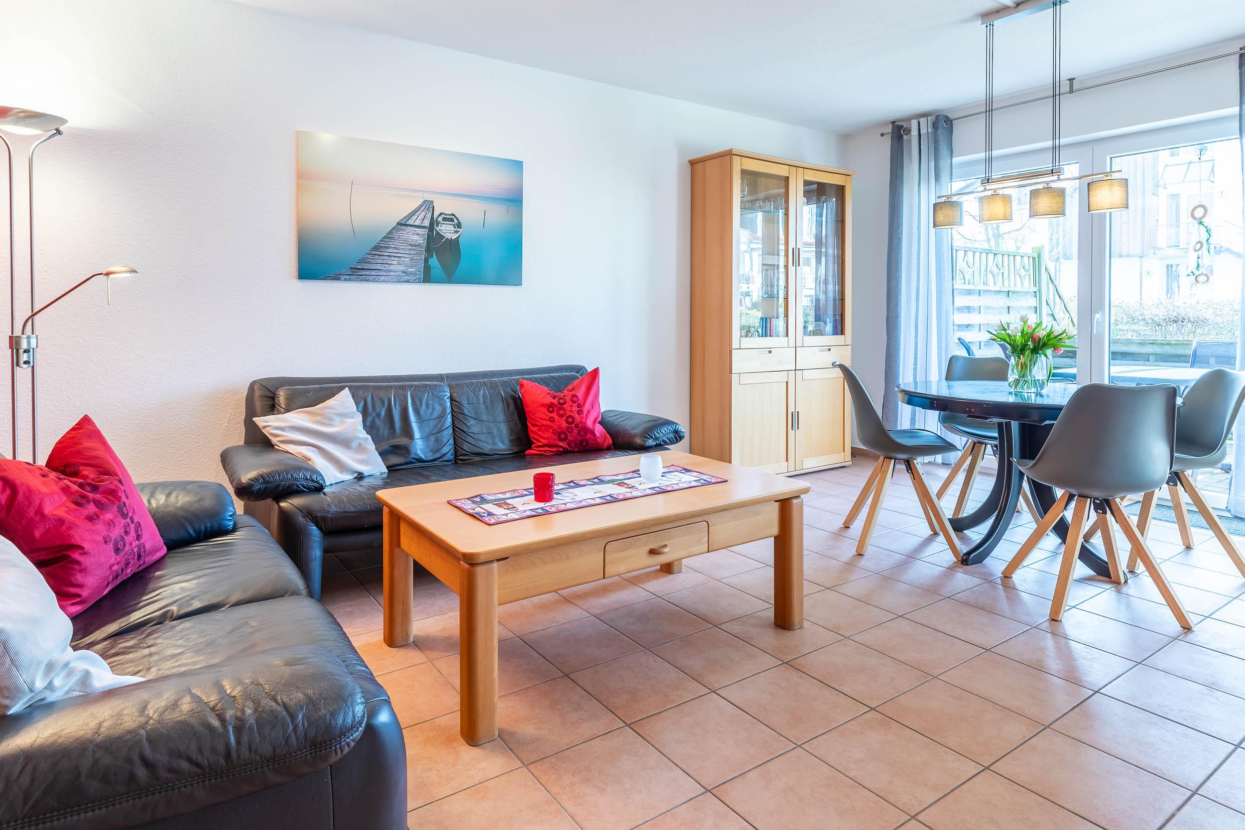 Die 3-Zimmer-Ferienwohnung im Erdgeschoss bietet auf etwa 80qm Wohnfläche eine familienfreundliche Ausstattung für 5 Gäste plus Kleinkind.