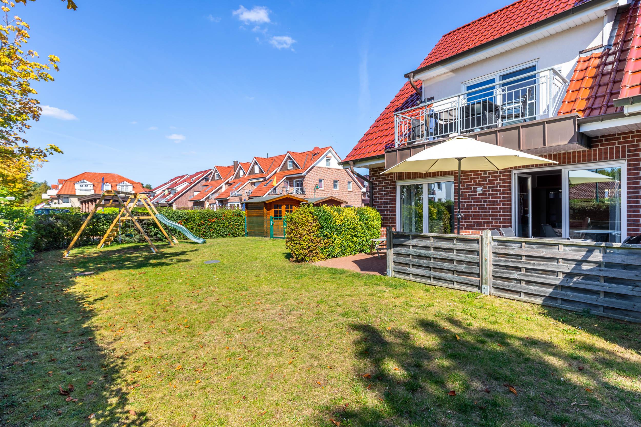 Im Gemeinschafts-Garten, welcher für alle Gäste des Hauses zugänglich ist, befindet sich ein kleiner hauseigener Spielplatz.