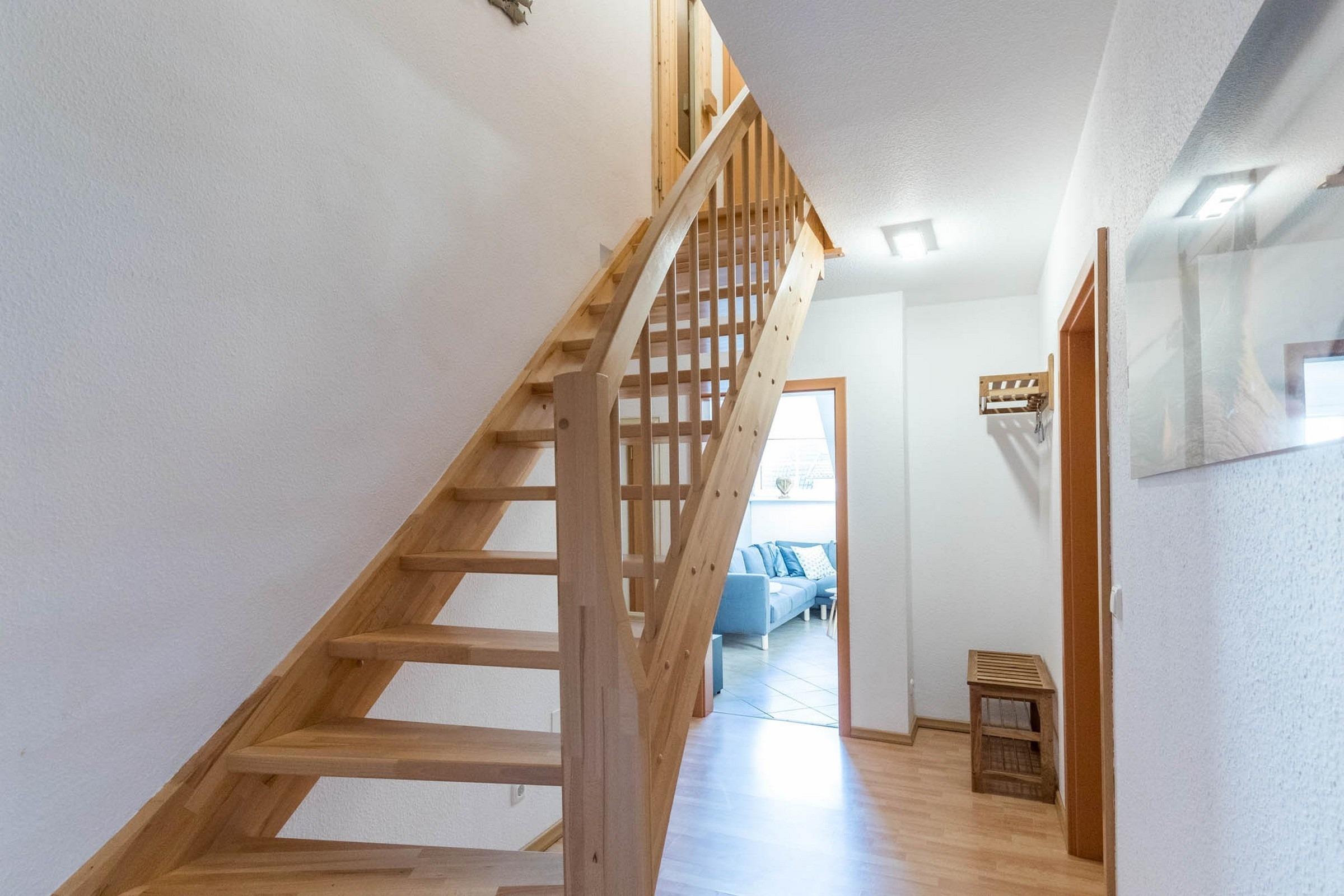 Über eine Treppe im Flur erreichen Sie das Obergeschoss des Hauses.