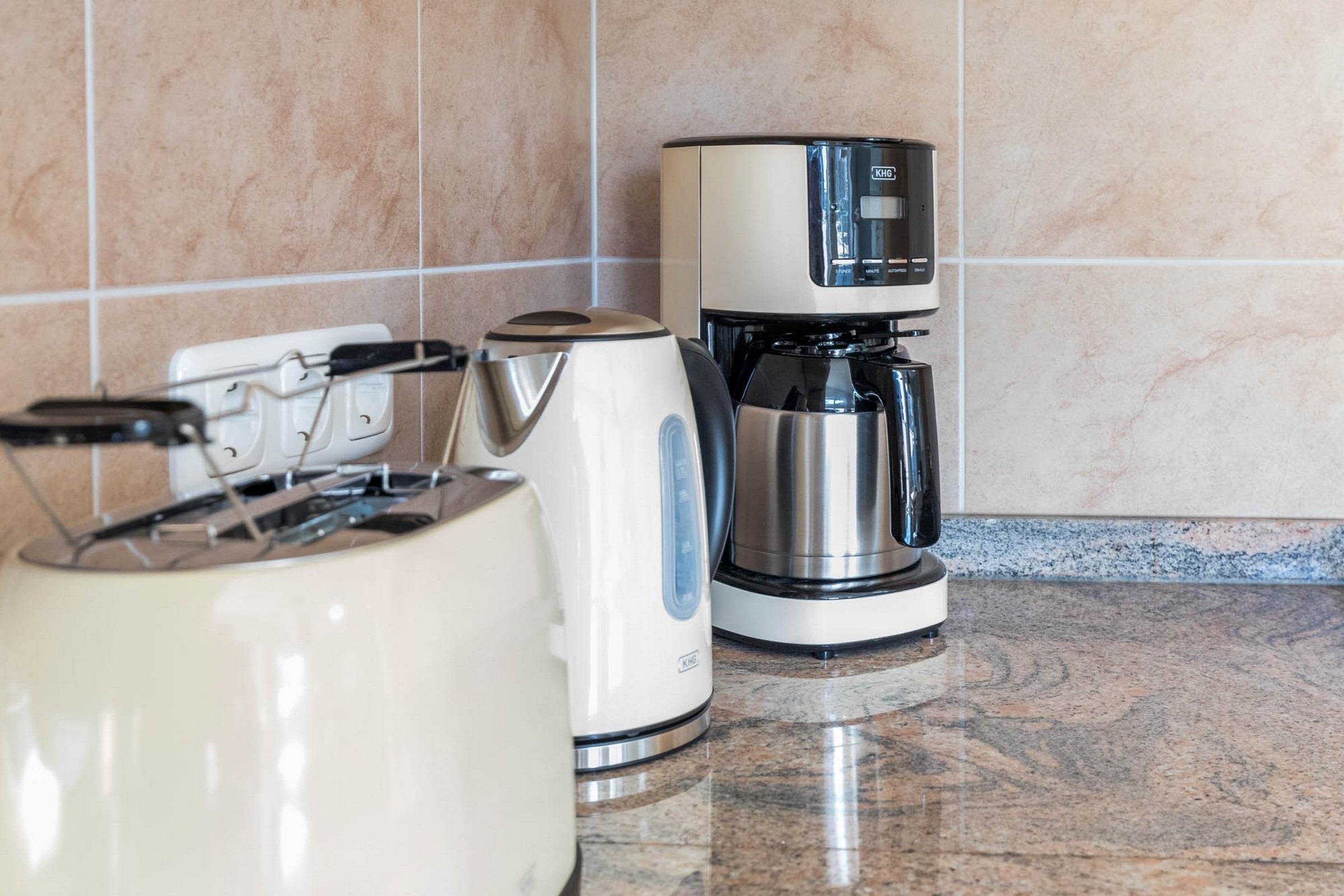 Die Küche verfügt über jeglichen technischen Komfort – wie Spülmaschine, Kühlschrank mit Gefrierfach, Herd bzw. Backofen, Kaffeemaschine, eine Senseo Padmaschine [&] eine Tassimo sowie einen Toaster.