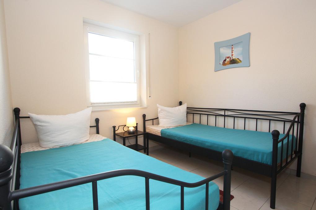 Im Schlafzimmer finden Sie ein breites Doppelbett sowie einen geräumigen Schrank vor, das Gäste-/ Kinderzimmer ist mit zwei Einzelbetten und ebenfalls einem Kleiderschrank ausgestattet.