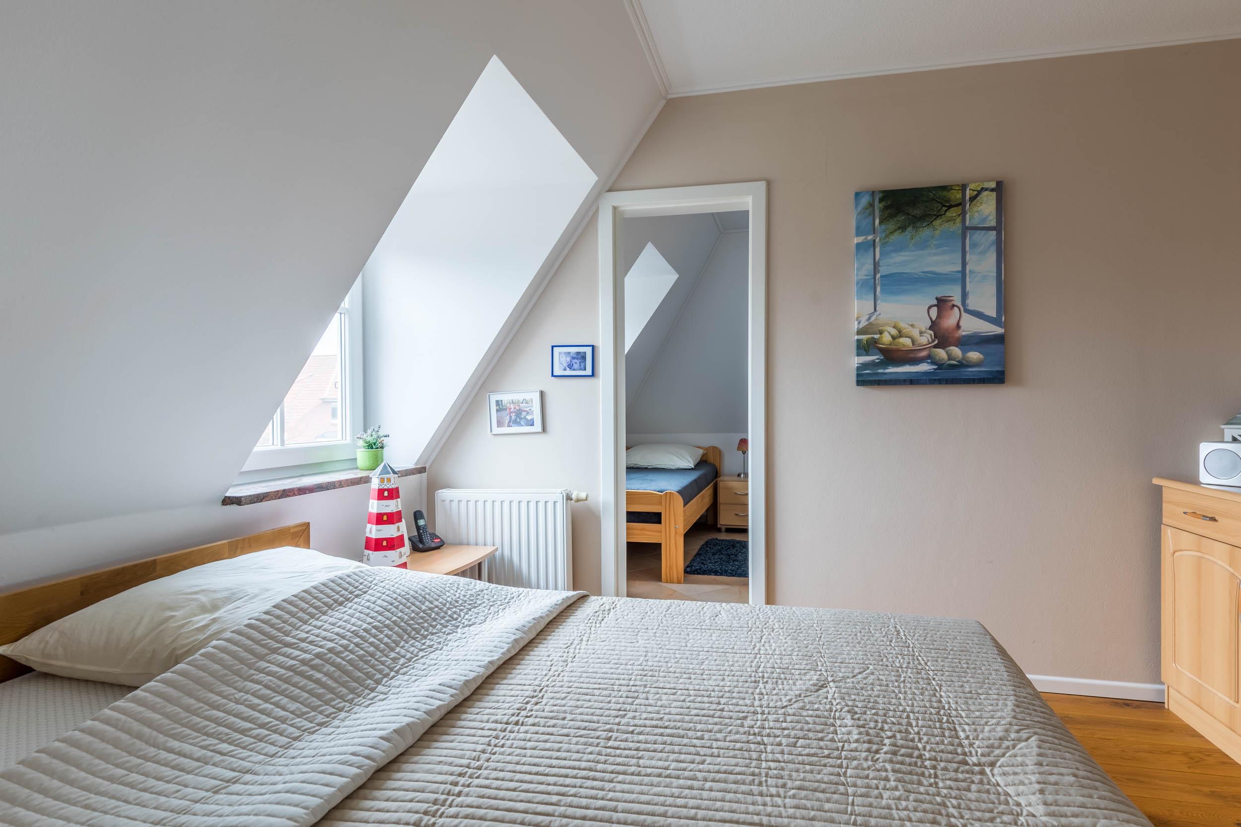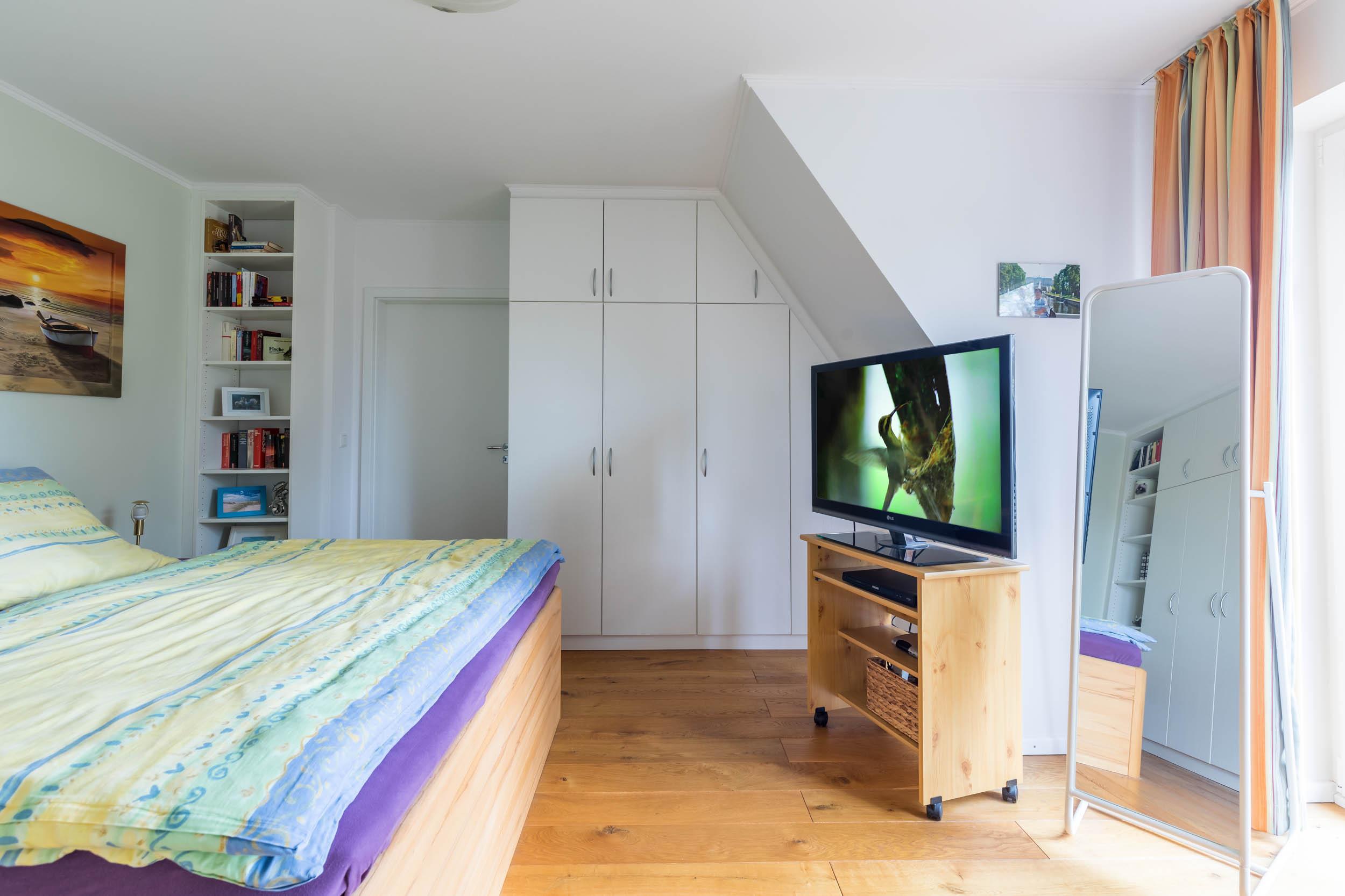 Die Wohnung ist mit 3 separaten Schlafzimmern ausgestattet: Im größten Schlafzimmer befinden sich neben einem höheren Doppelbett auch ein weiterer Flatscreen-TV zur Multimediaunterhaltung. Die Gästezimmer sind einmal mit zwei Einzelbetten und einmal mit einem Doppelbett eingerichtet. Für genügend Stauraum Ihrer Urlaubsgarderobe ist gesorgt. Fliegengitter an den Fenstern sorgen für ruhige Nächte bei offenem Fenster.