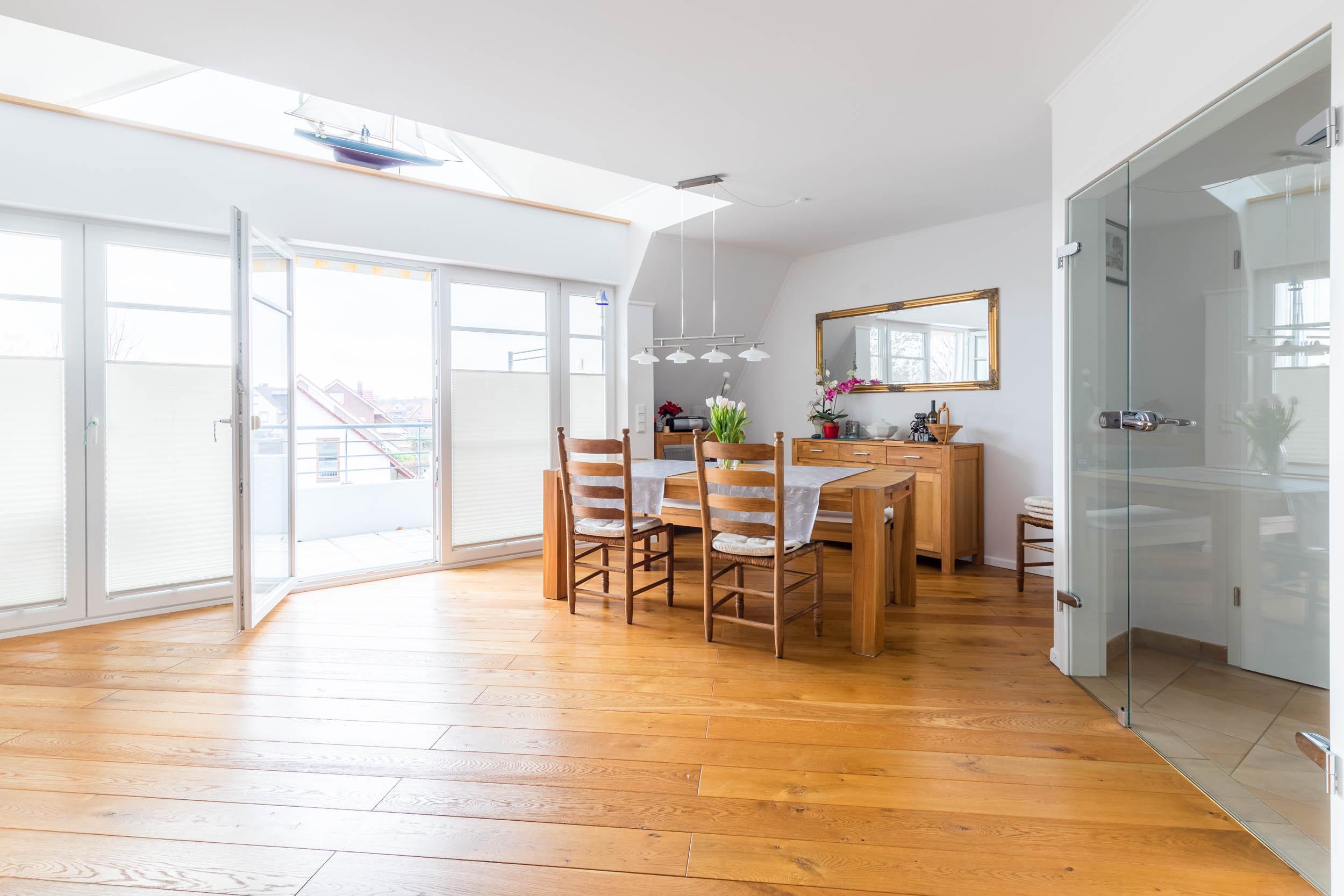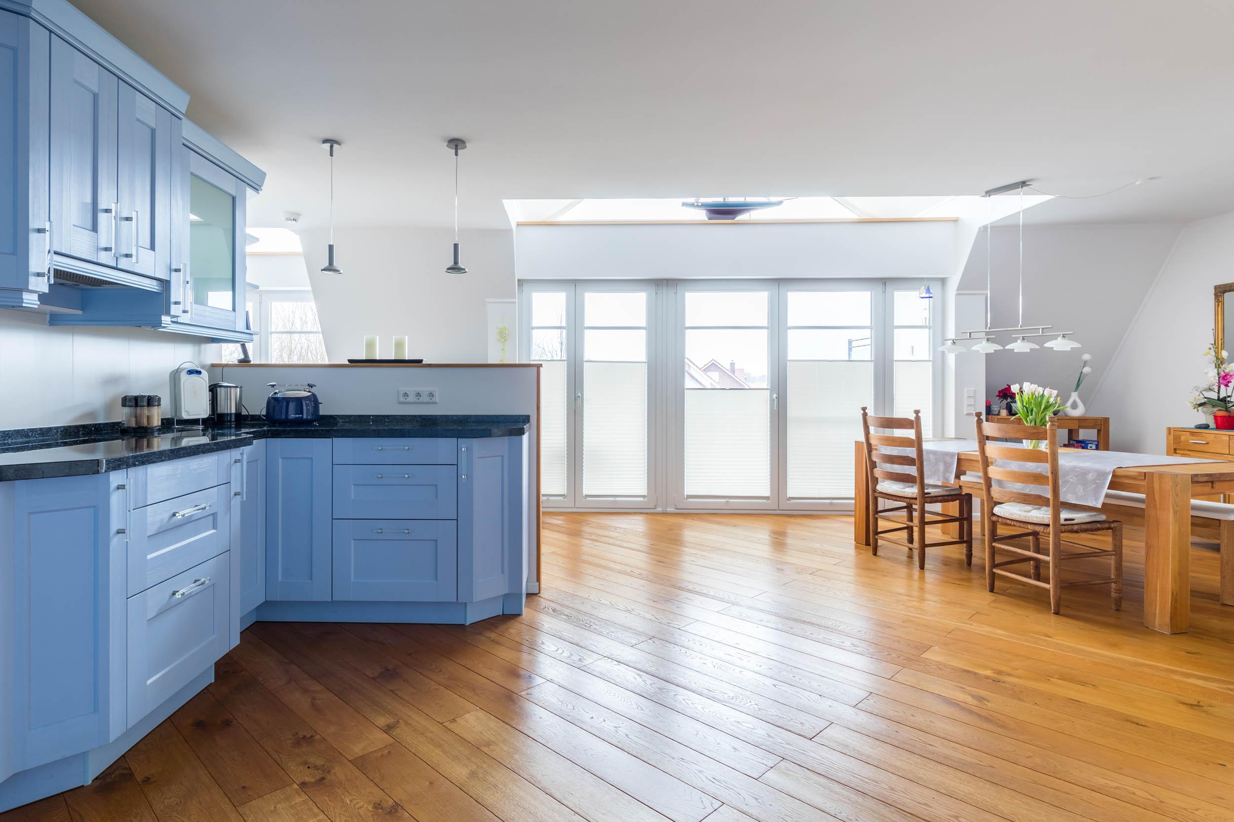 Nutzen Sie die komfortable Ausstattung der großzügigen und offenen Küchenzeile, um Ihre Mahlzeiten selbst zuzubereiten. In der angeschlossenen Essecke können Sie diese anschließend gemeinsam genießen.