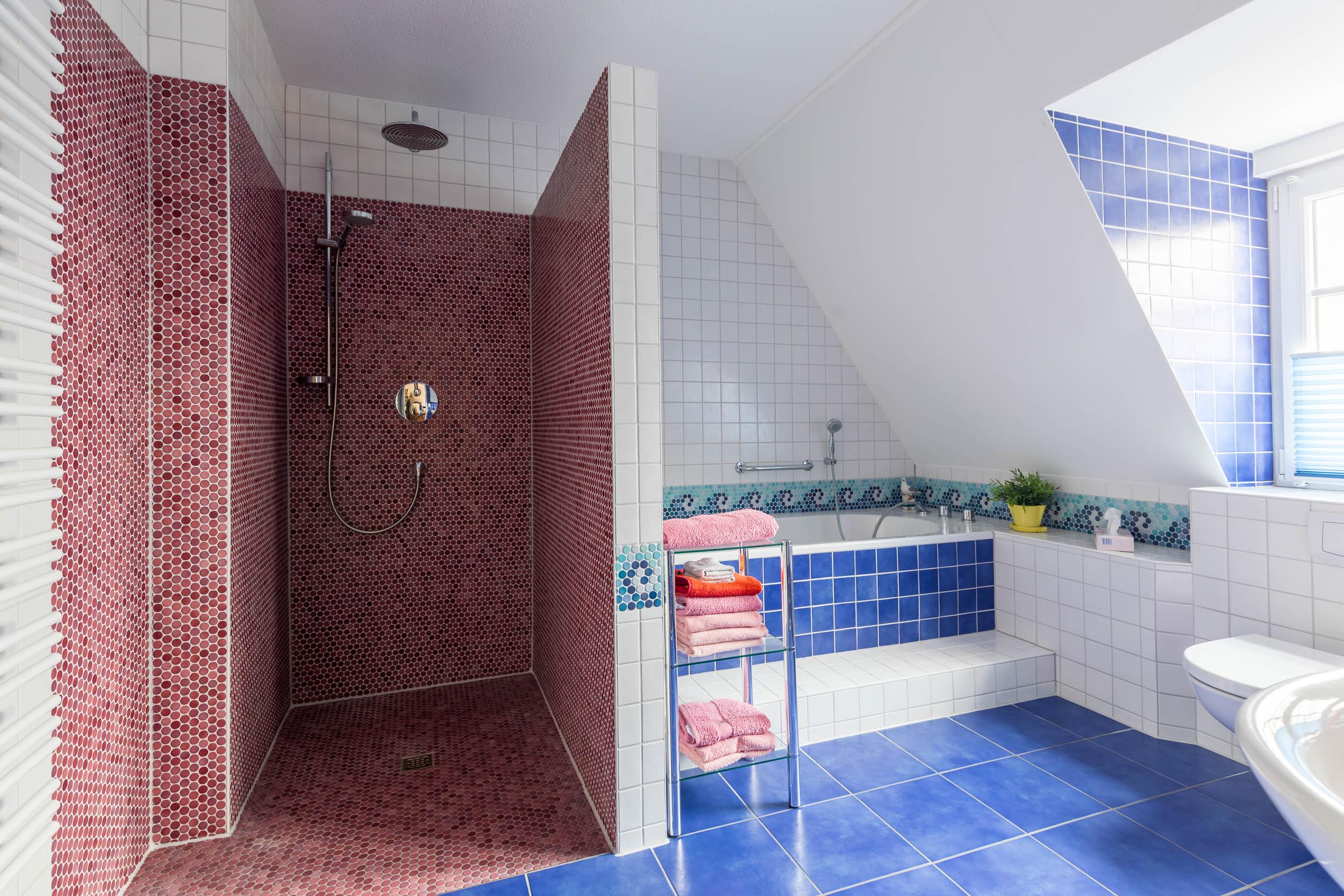 Weiterhin erleichtern 2 Bäder den Familienurlaub - Ein Badezimmer mit WC und Dusche und ein Badezimmer ist mit Badewanne, Dusche und WC ausgestattet.