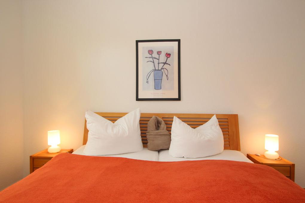 Das Schlafzimmer bietet ein komfortables Doppelbett (180x200cm/ Höhe 53cm). Ihre Urlaubsgarderobe können Sie gern in dem Kleiderschrank ablegen.
