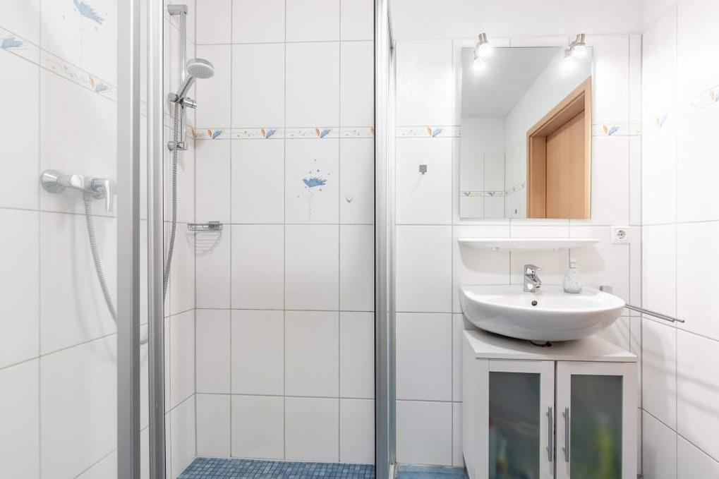 Das innenliegende Badezimmer ist mit einer ebenerdigen Dusche und WC ausgestattet. Eine große Handtuchheizung sorgt zusätzlich für wohlige Wärme.