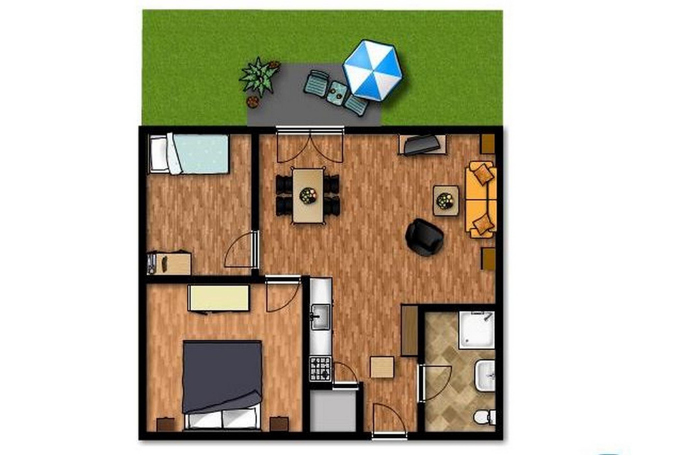 Im Schlafzimmer finden Sie ein gemütliches Doppelbett sowie einen Kleiderschrank. In dem Gäste-/ Kinderzimmer befindet sich ein Einzelbett mit Ausziehfunktion, welches somit dann Platz für zwei weitere Gäste bietet. Weiterhin ist dieses Zimmer mit einem 2.TV ausgestattet.