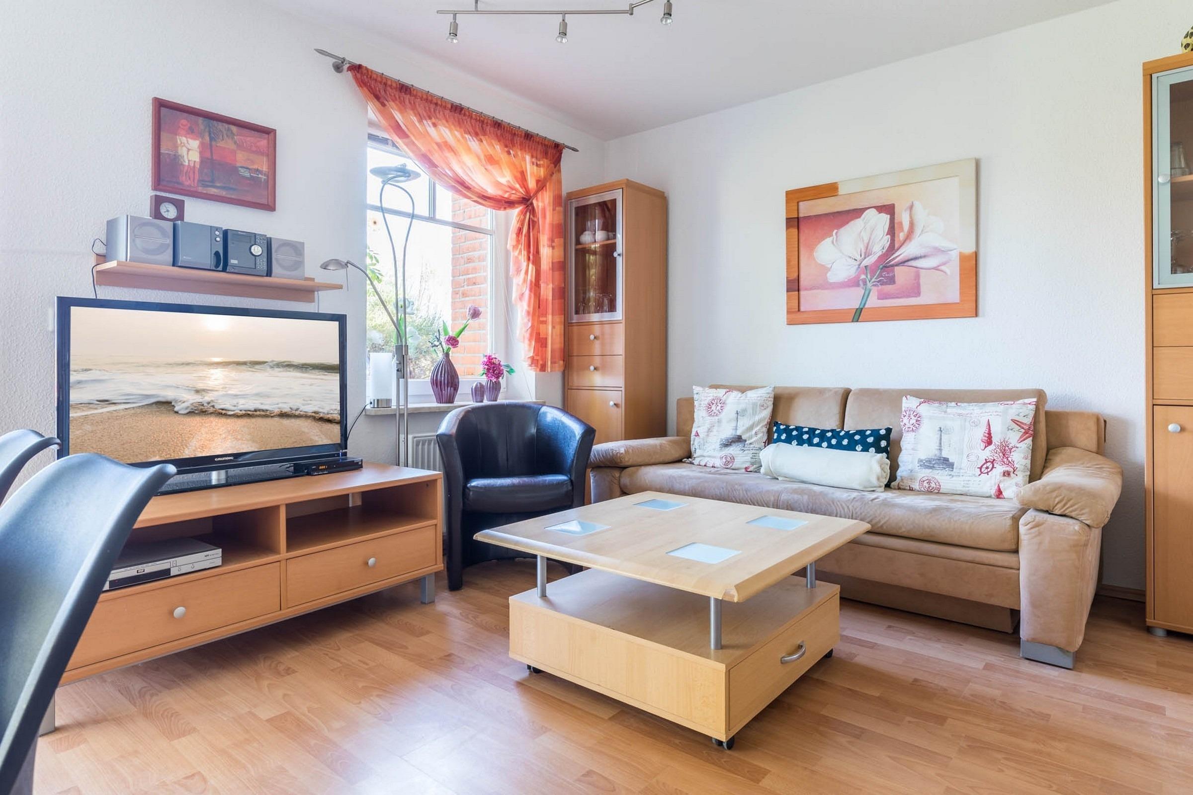 Diese moderne 3-Zimmer-Ferienwohnung im Erdgeschoss ist auf 51qm Wohnfläche hell und freundlich für 4 Gäste + Kleinkind eingerichtet.