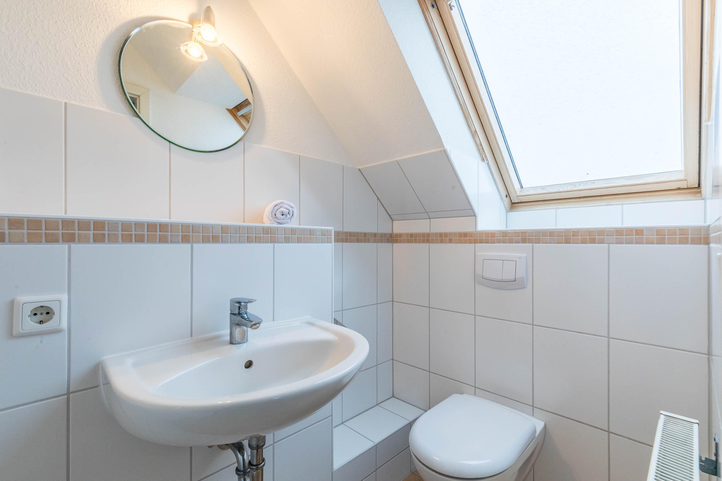 Auch das Bad mit Dusche und WC befindet sich auf dieser Etage.