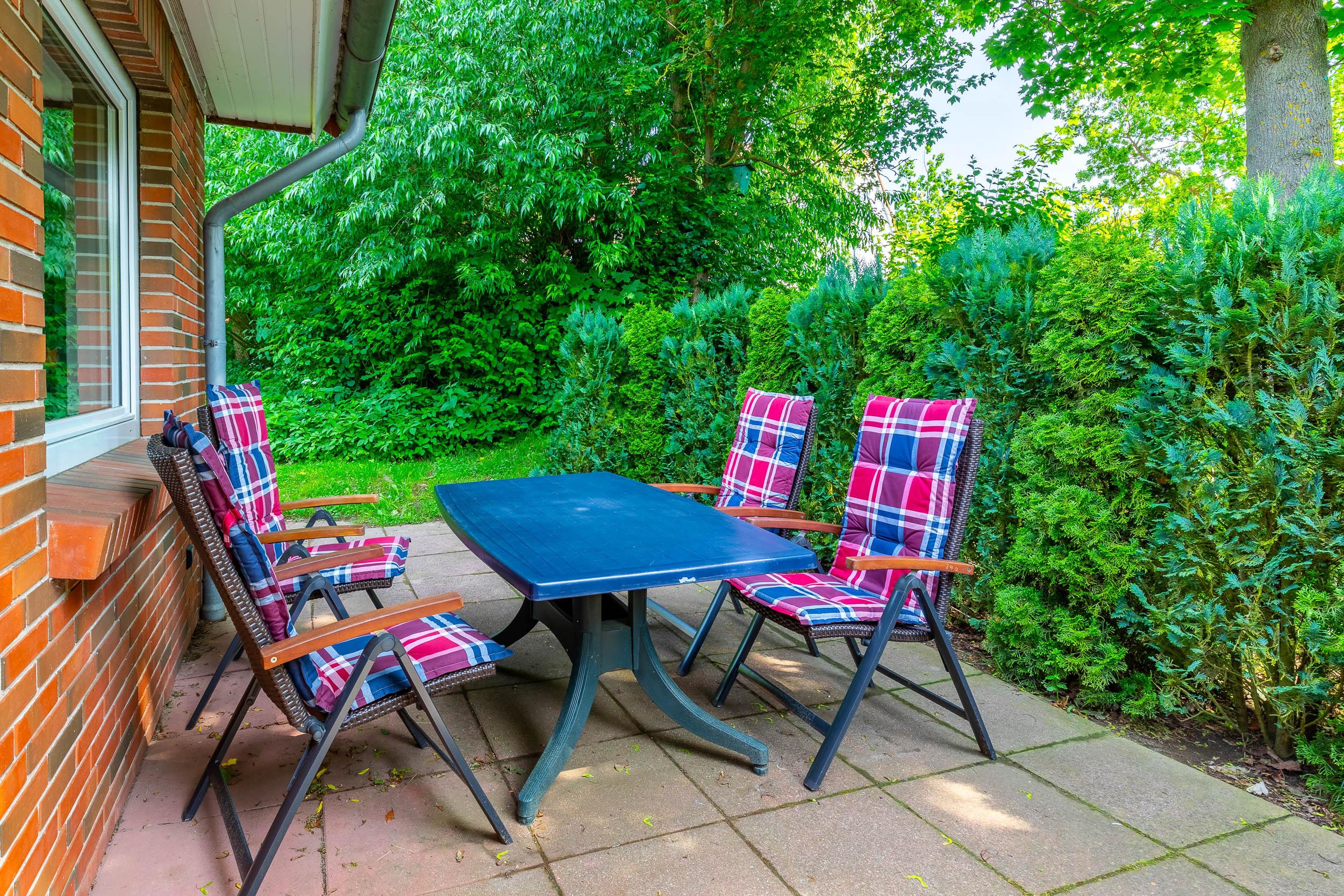 Von hier aus gelangen Sie auf die hauseigene Süd-Terrasse oder lassen Sie die Kinder im grünen Garten spielen. Selbstverständlich sind Gartenmöbel vorhanden.