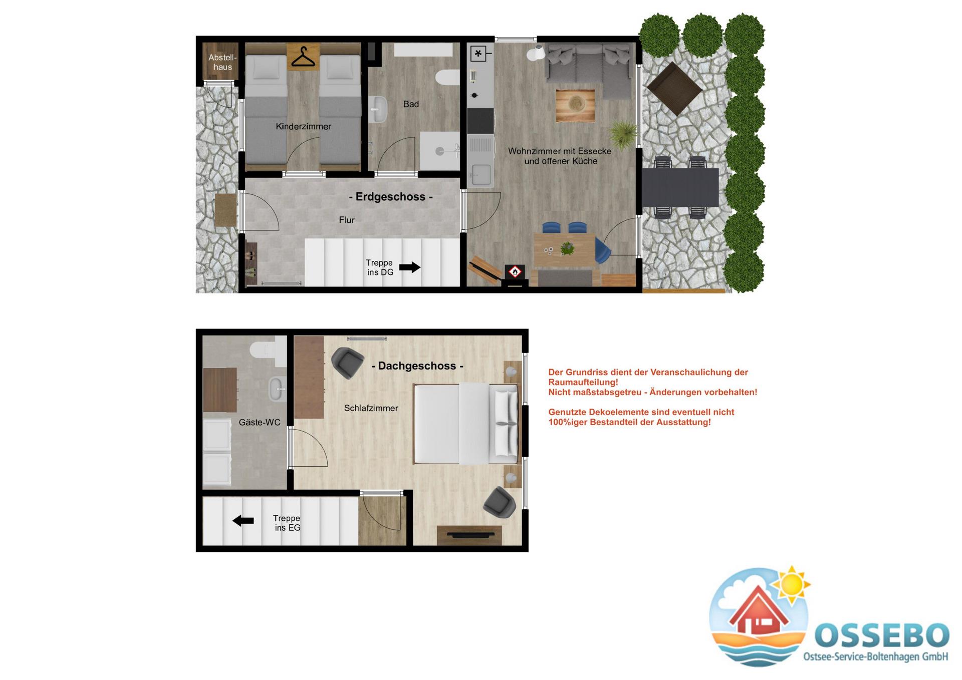 Das rund 60qm große Reihenmittelhaus mit 3 Zimmern in der strandnahen Ferienanlage "Neues Urlauberdorf" bietet auf 2 Ebenen verteilt eine Ausstattung für 4 Gäste + 1 Kleinkind.