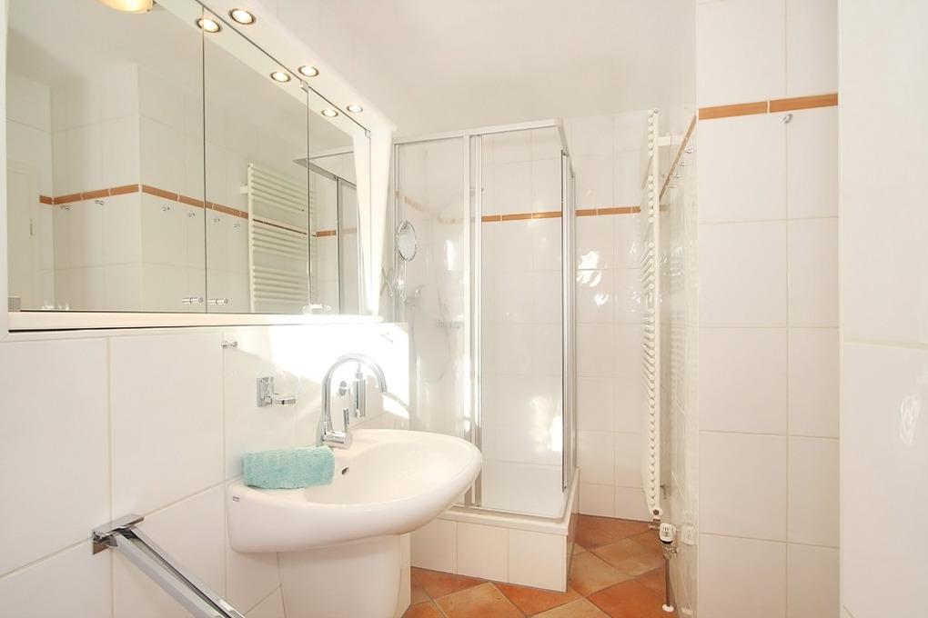 Es stehen Ihnen zwei Bäder mit geräumigen Duschen und hochwertigen Spiegelschränken zur Verfügung. In einem der Bäder befindet sich auch die Waschmaschine mit Trockner.