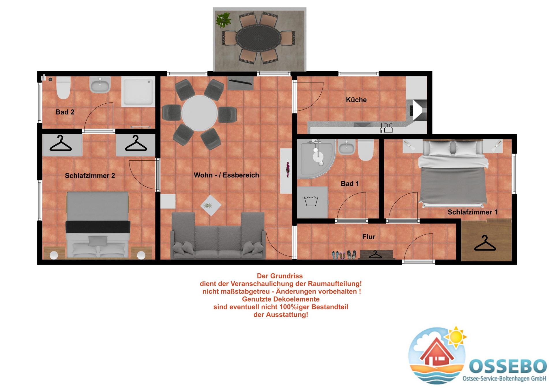 Onlinebuchungen sind nicht gestattet! Bei Bedarf senden Sie uns bitte eine Anfrage per E-Mail.Roomservice - beinhaltet mit Bettwäsche frisch bezogene Betten für alle gebuchten Gäste ab 4 Jahre, die Endreinigung nach Abreise sowie ein Fewo-Starterpaket einschließlich Geschirrspültabs, Spülmittel, Toilettenpapier, Müllbeutel etc.