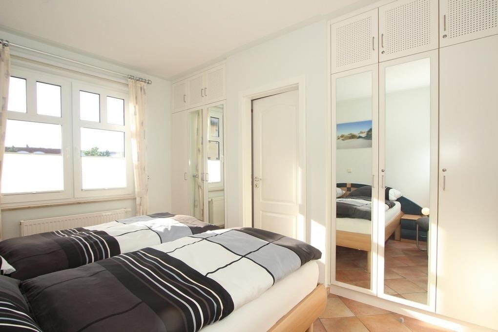 Die Wohnung bietet zwei Schlafzimmer: Eines ist mit einem Doppelbett (180x200cm) eingerichtet. Das zweite Schlafzimmer bietet ebenfalls ein Doppelbett (160cmx200cm) sowie SAT-TV. Beide Zimmer sind weiterhin mit großen Einbauschränken ausgestattet.