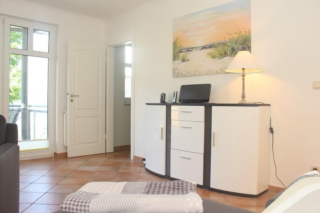 Diese Ferienwohnung mit möbliertem Balkon in Ausrichtung zur Ostsee (Norden), welchen Sie vom Wohnzimmer aus erreichen, lässt Urlaubsstimmung aufkommen. Im Herbst/ Winter können Sie sogar einen Blick auf die Ostsee erhaschen.