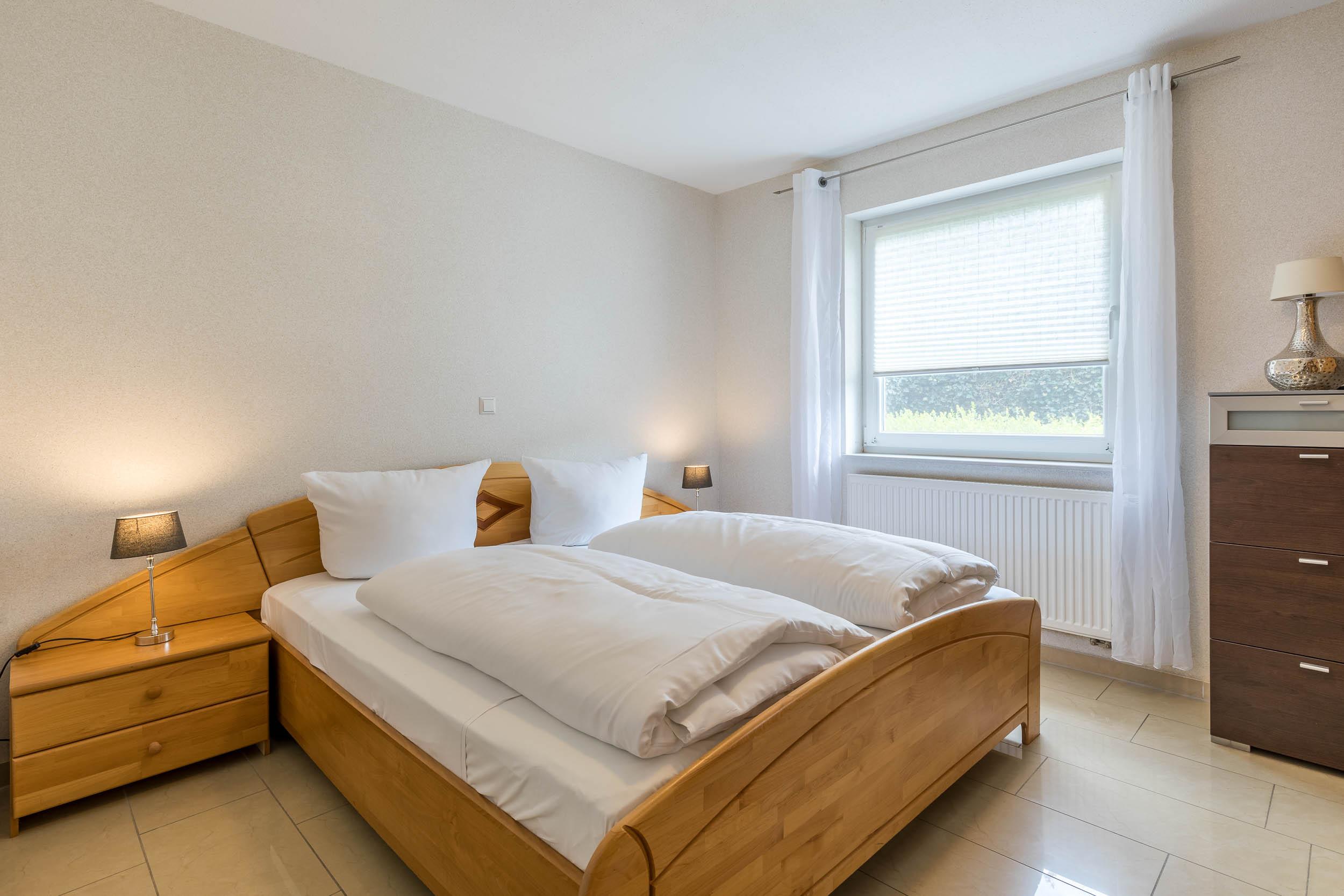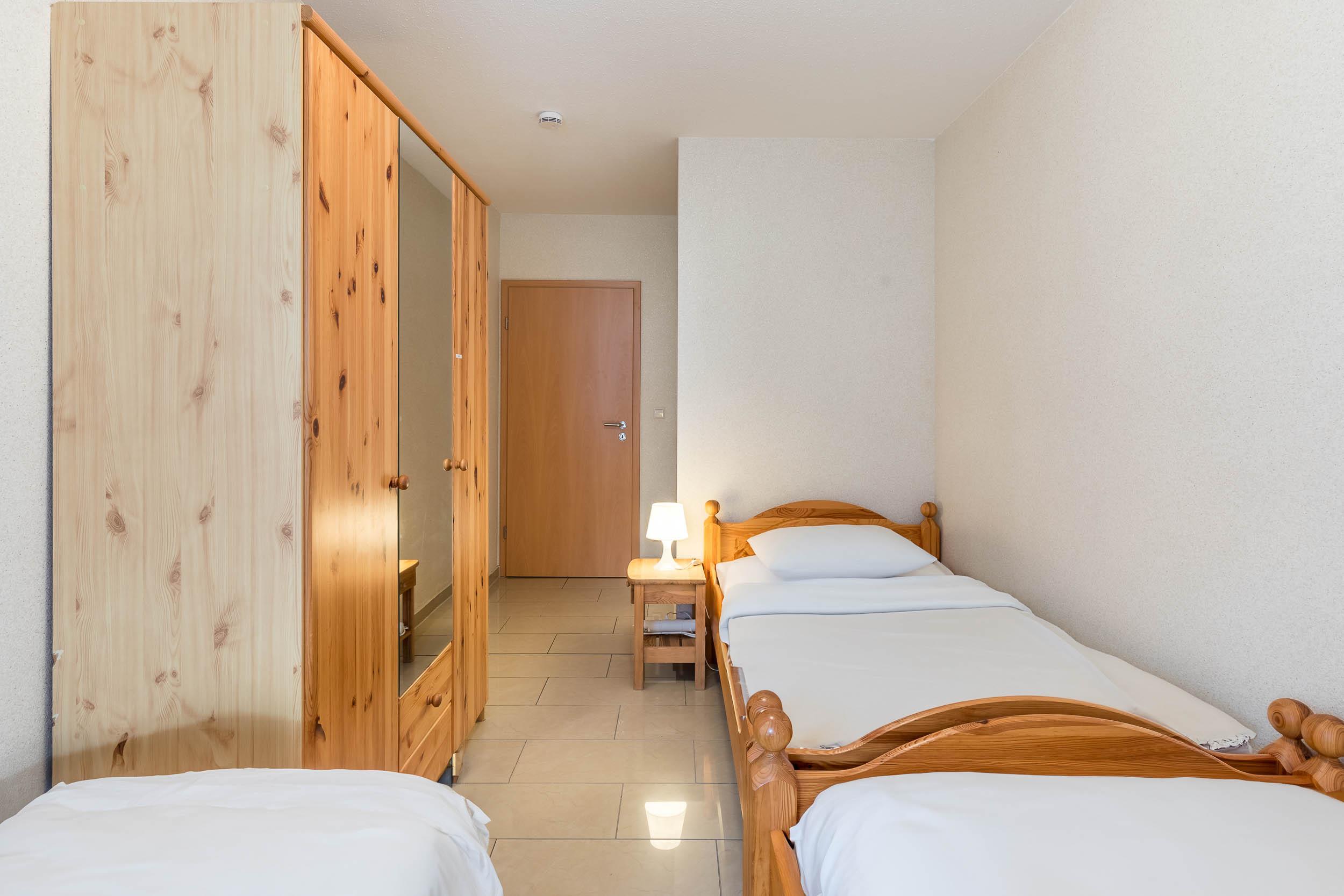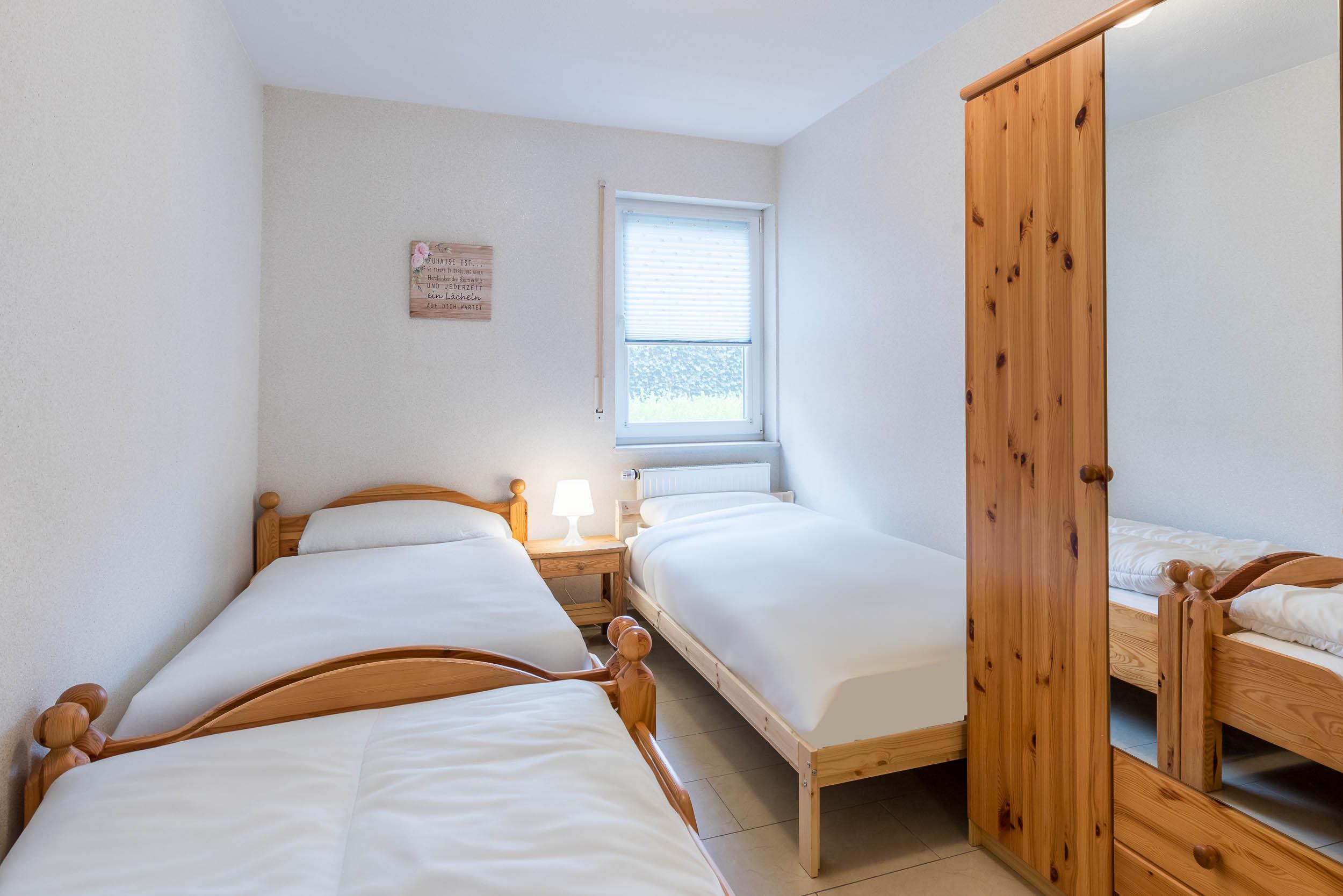 Weiterhin bietet die Ferienwohnung ein Schlafzimmer mit Doppelbett und Kleiderschrank sowie ein Gästezimmer mit 3 Einzelbetten. Auch hier steht ein Kleiderschrank für Ihre Garderobe bereit.