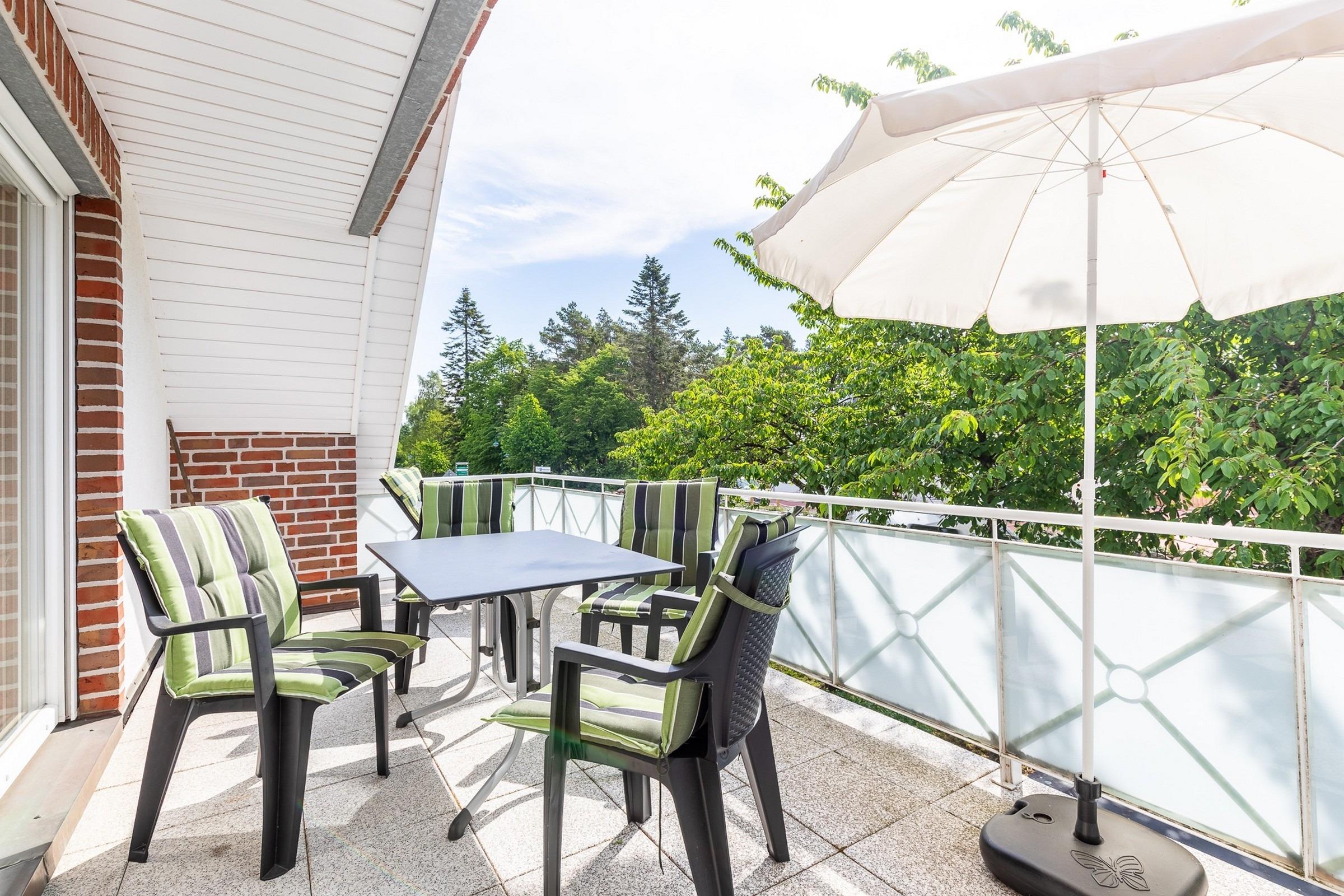 Genießen Sie die herrliche Ostseeluft auf Ihrem möblierten Südost-Balkon und beobachten Sie das bunte Treiben am Ortsrand.