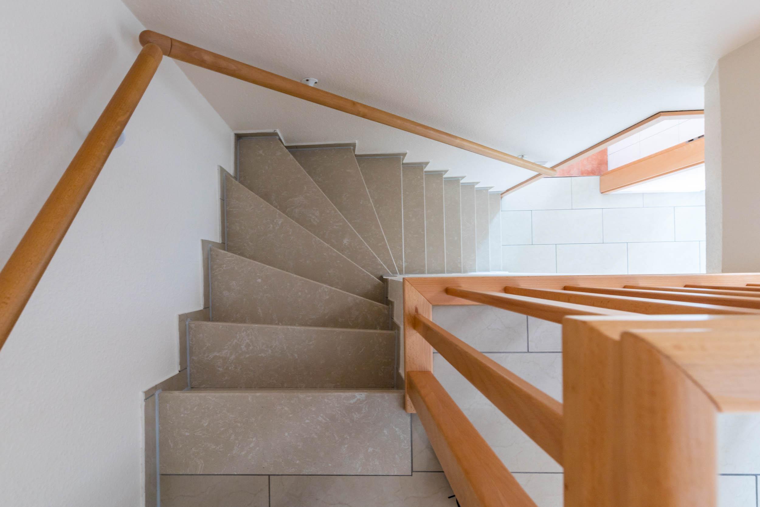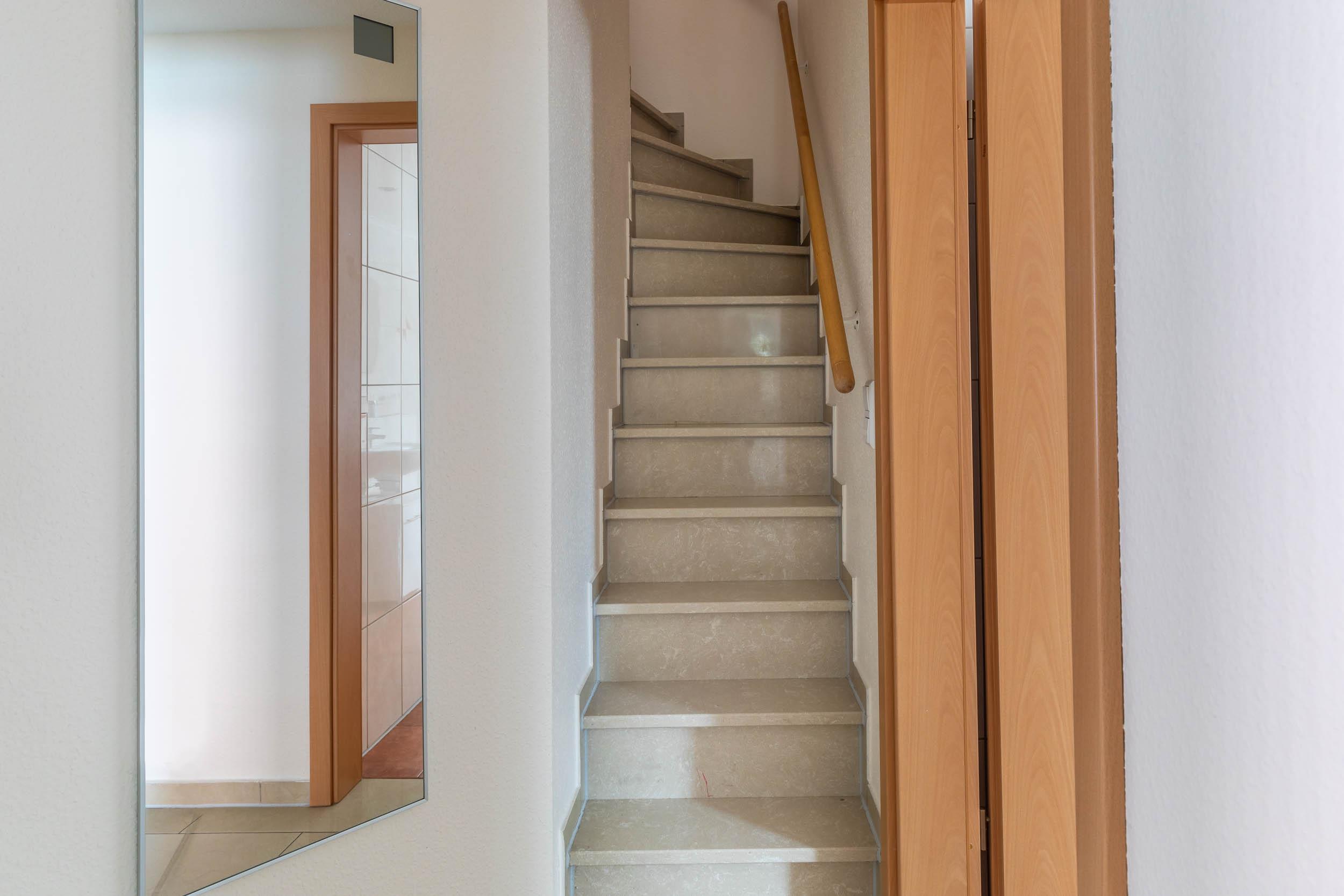 Eine schmale geflieste Treppe vom Flur aus führt Sie ins Dachgeschoss, der 2. Wohnebene.