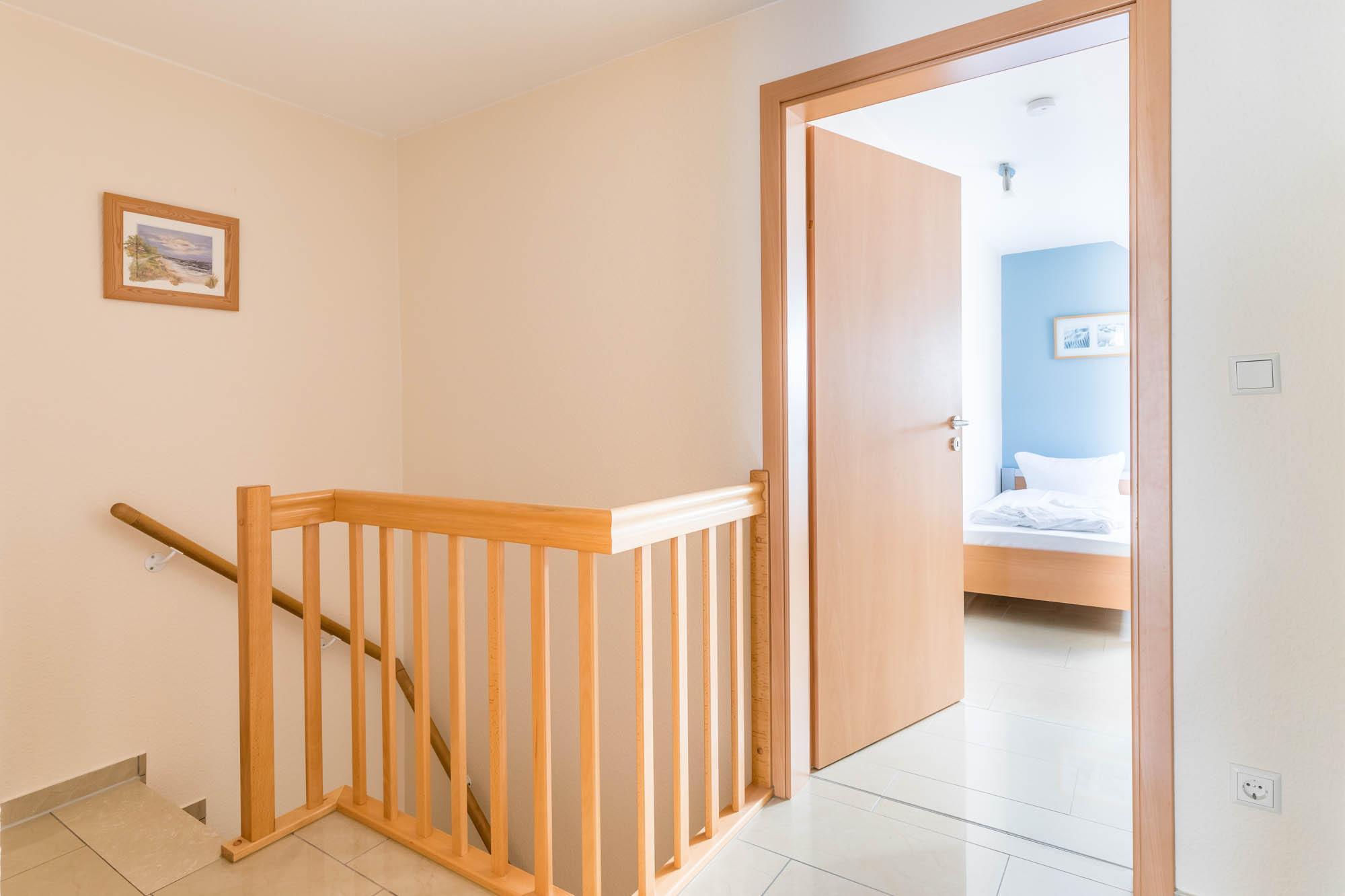 Die familienfreundliche 4-Zimmer-Ferienwohnung im 1.OG ist für 8 Gäste + 1 Kleinkind komfortabel ausgestattet und bietet auf rund 100qm Wohnfläche, die sich über 2 Ebenen erstrecken, auch ausreichend Platz.