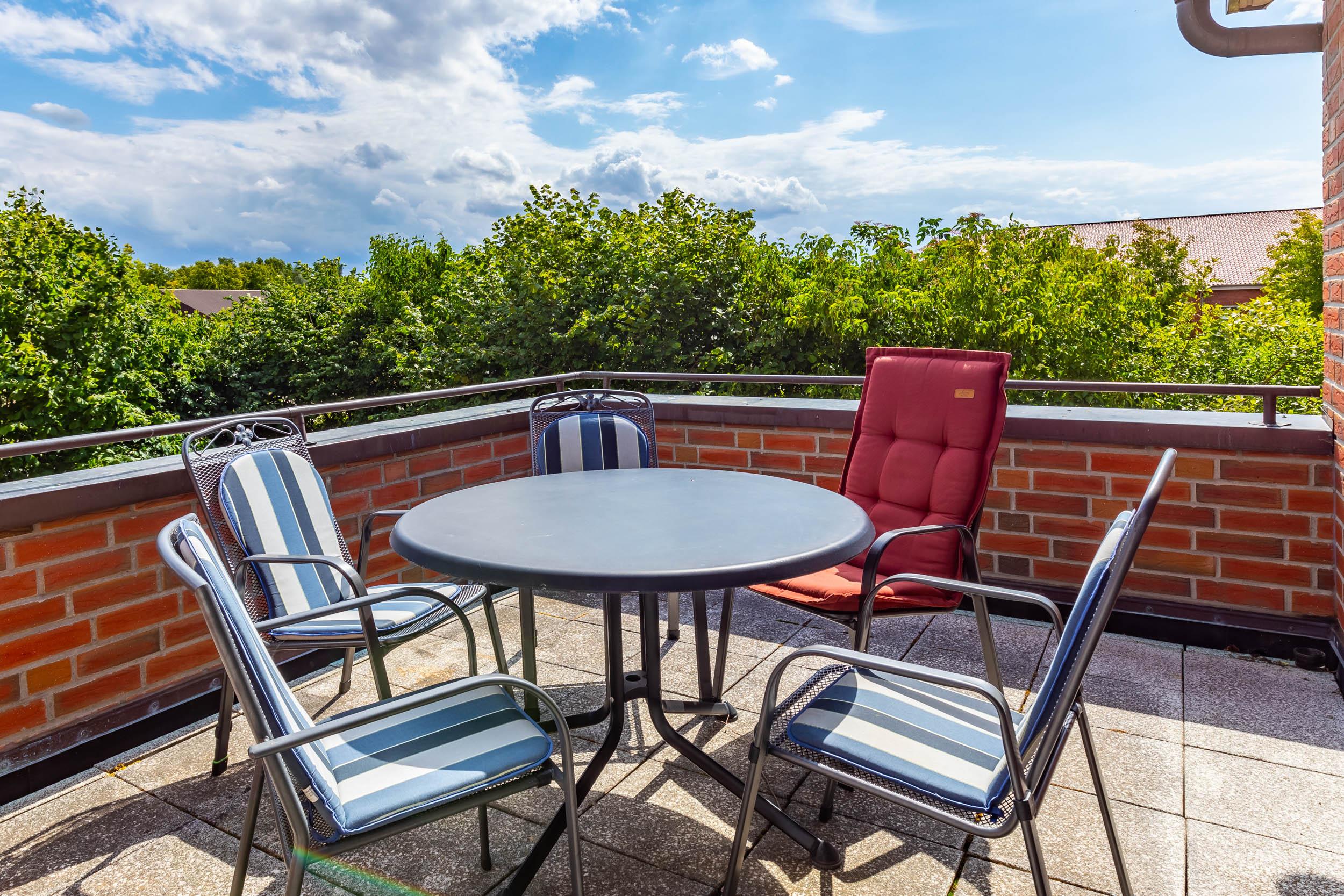 Der große und vor fremden Blicken geschützte sowie möblierte Südost-Balkon lädt zum Sonnenbaden und Entspannen ein.