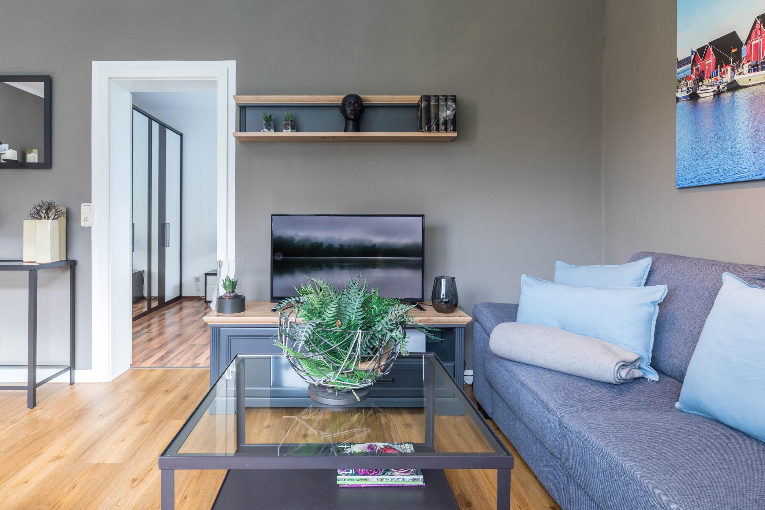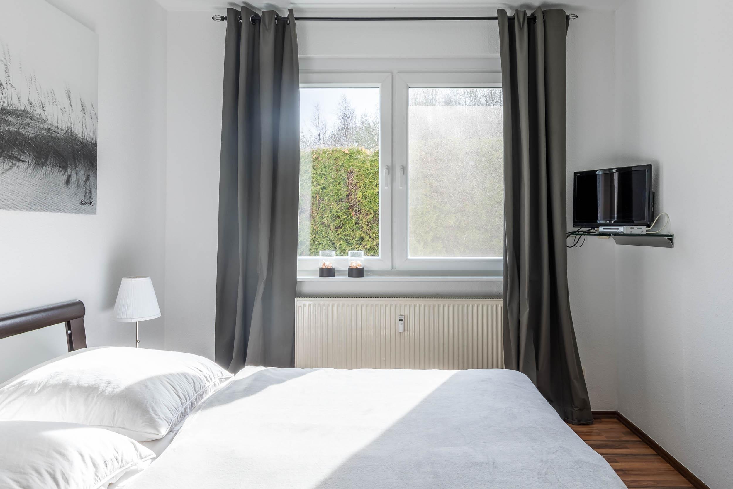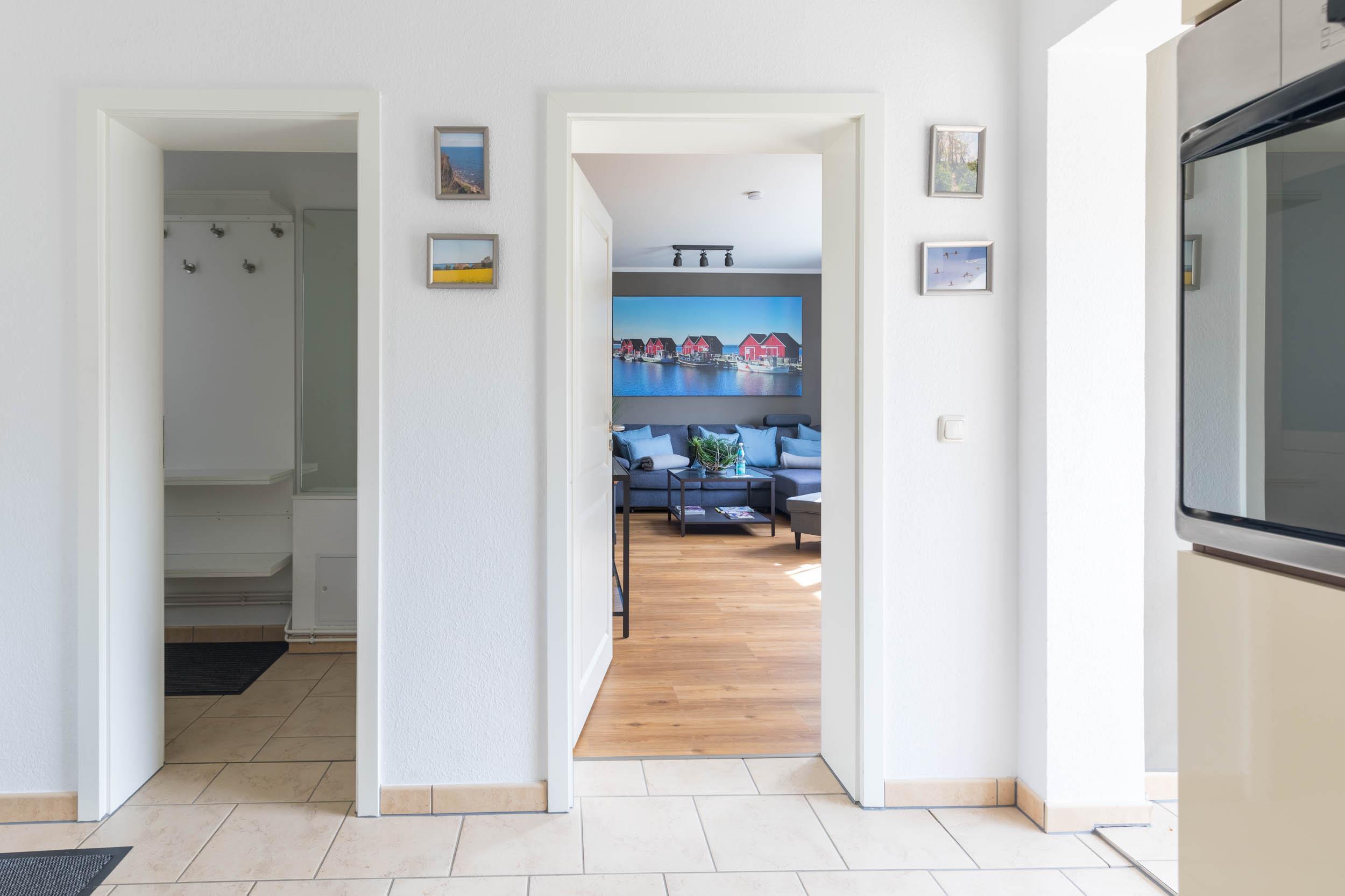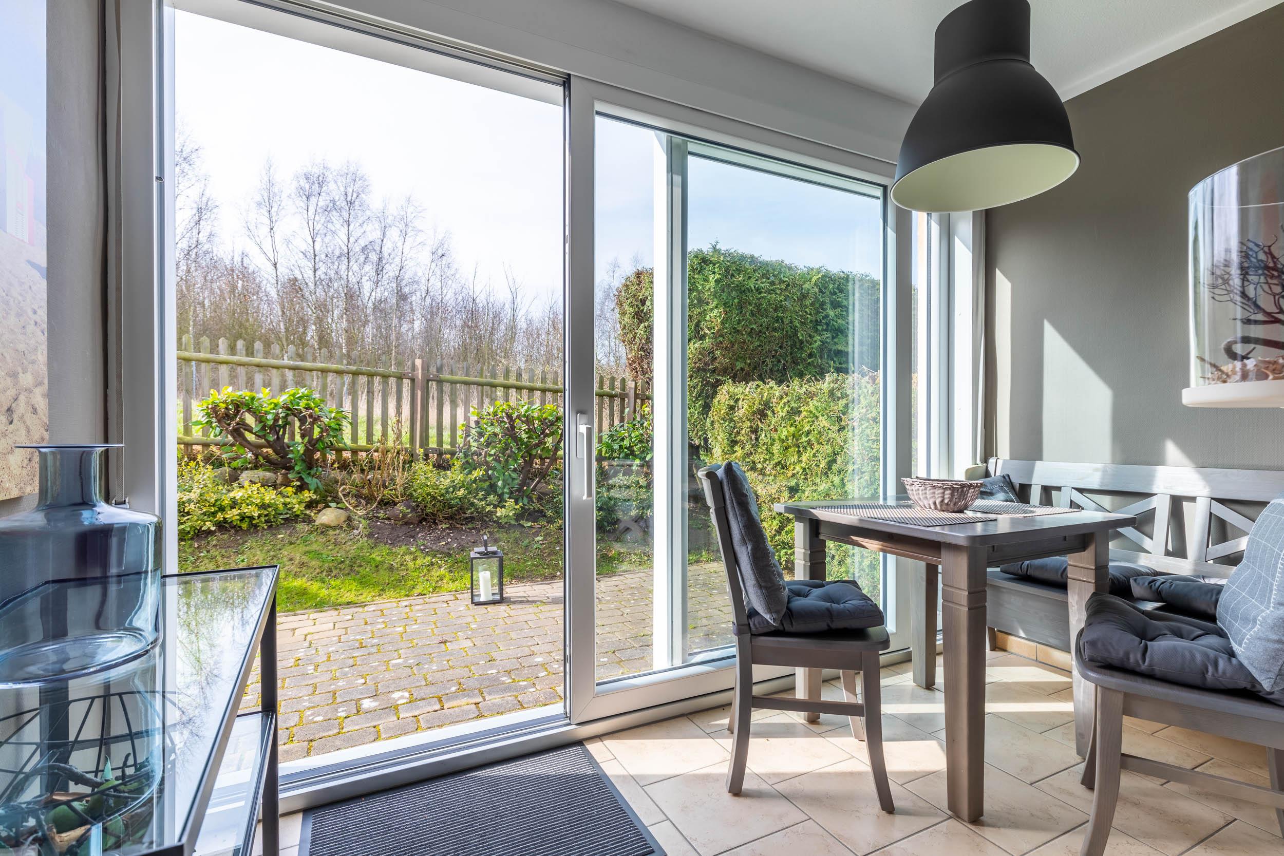 Die Ferienwohnung bietet für 2 Gäste Platz. Der Eingangsbereich ist überdacht. In einem separaten Raum befindet sich die Garderobe, ein großer Spiegel und ein Haushaltsschrank. Im Wohnbereich befindet sich eine komfortable Couch mit Schlaffunktion. Das Schlafzimmer ist mit einem 1,80 m x 2,00 m (2 Matratzen je 0,9 m x 2 m) Bett, einem Kleiderschrank sowie Sat-TV eingerichtet. Die Küche ist mit einem Kühlschrank mit Gefrierfach, Backofen, 4er Ceranfeld, Geschirrspüler, Wasserkocher, Toaster, Mikrowelle sowie Filterkaffeemaschine und Nespresso-Maschine (Zusatz) ausgestattet. Von der Küche aus betritt man den Wintergarten mit Essbereich und Zugang zur Sonnenterrasse.