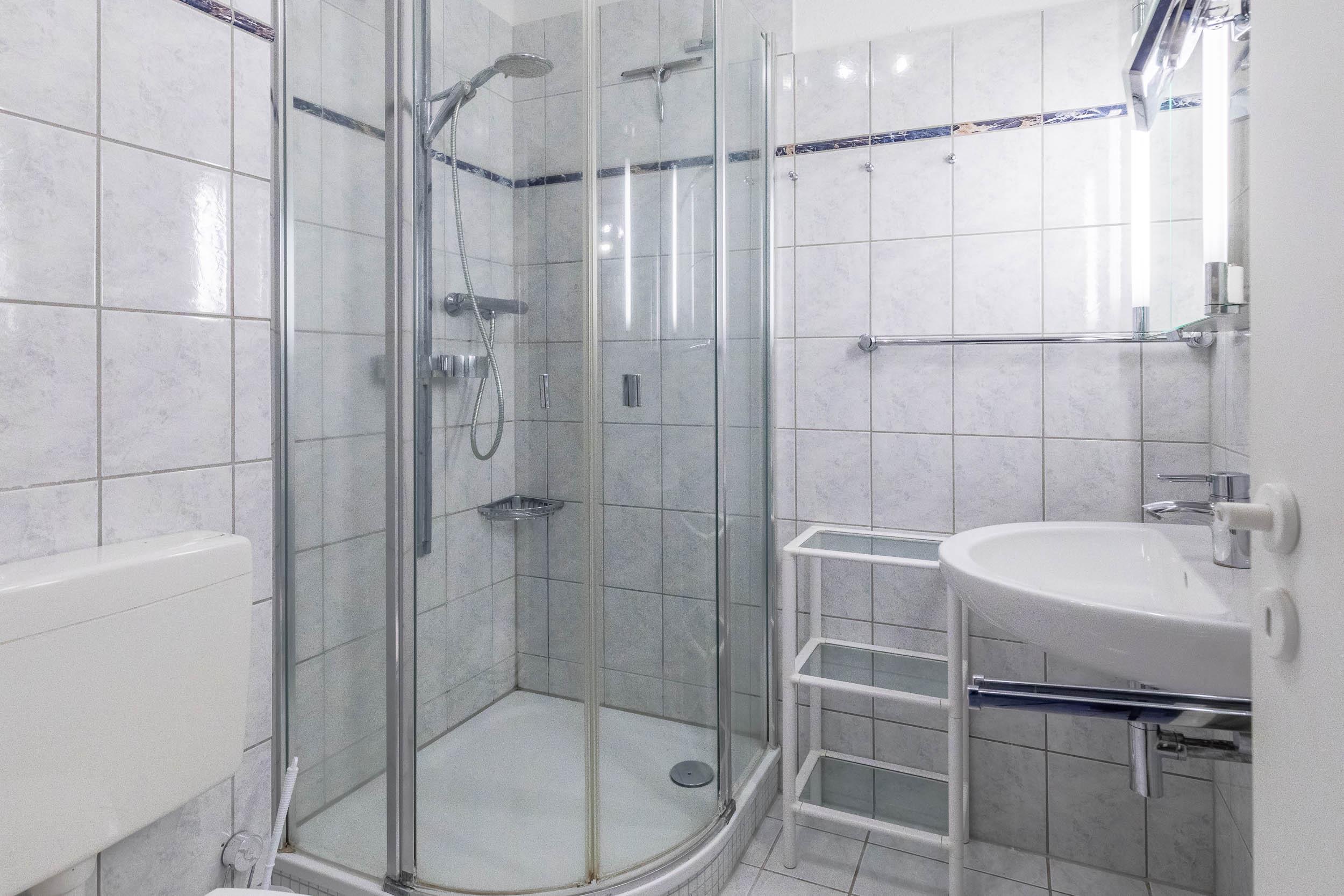 Das zweite Schlafzimmer ist mit einem Doppelbett (180x200m) und einem TV ausgestattet. Im hell gefliesten Bad befinden sich eine Dusche, Waschbecken und WC. Ein separates Gäste-WC rundet das Gesamtpaket ab.