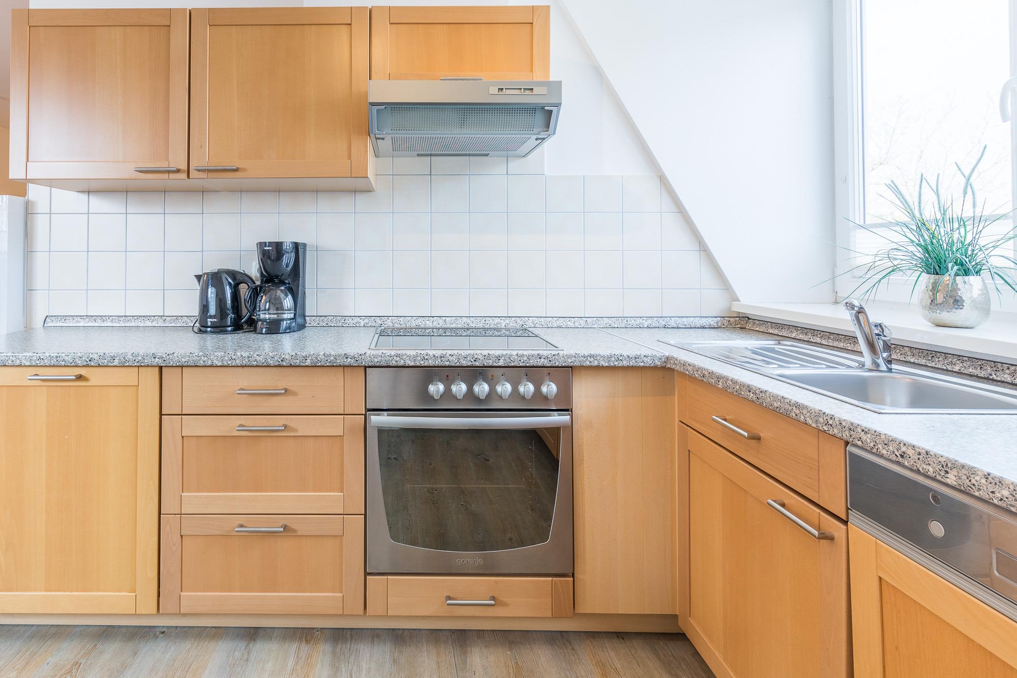 Außerdem verfügt es über eine komplett ausgestattete Küchenzeile mit Geschirrspülmaschine sowie ein Badezimmer mit Dusche. Haustiere sind erlaubt.