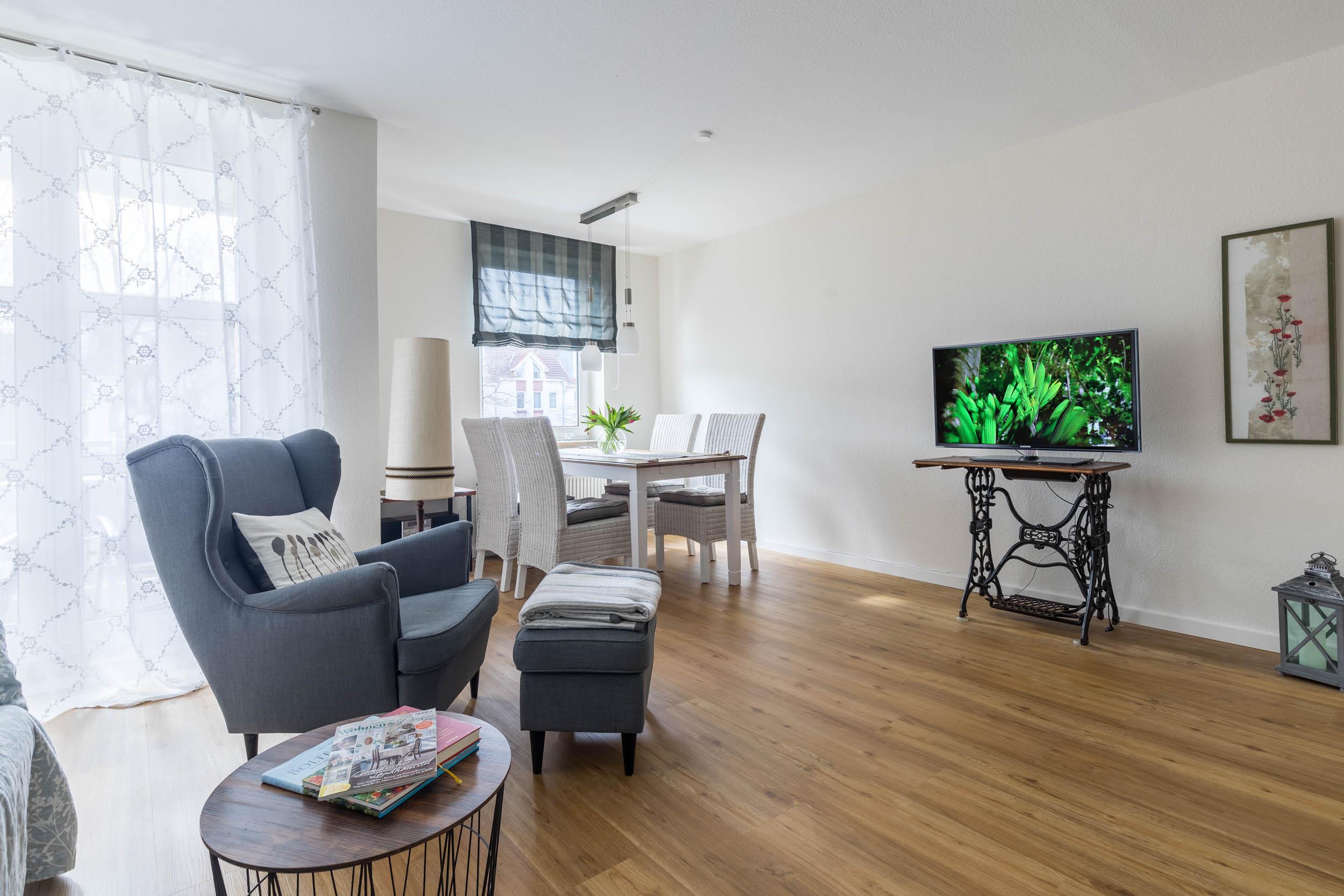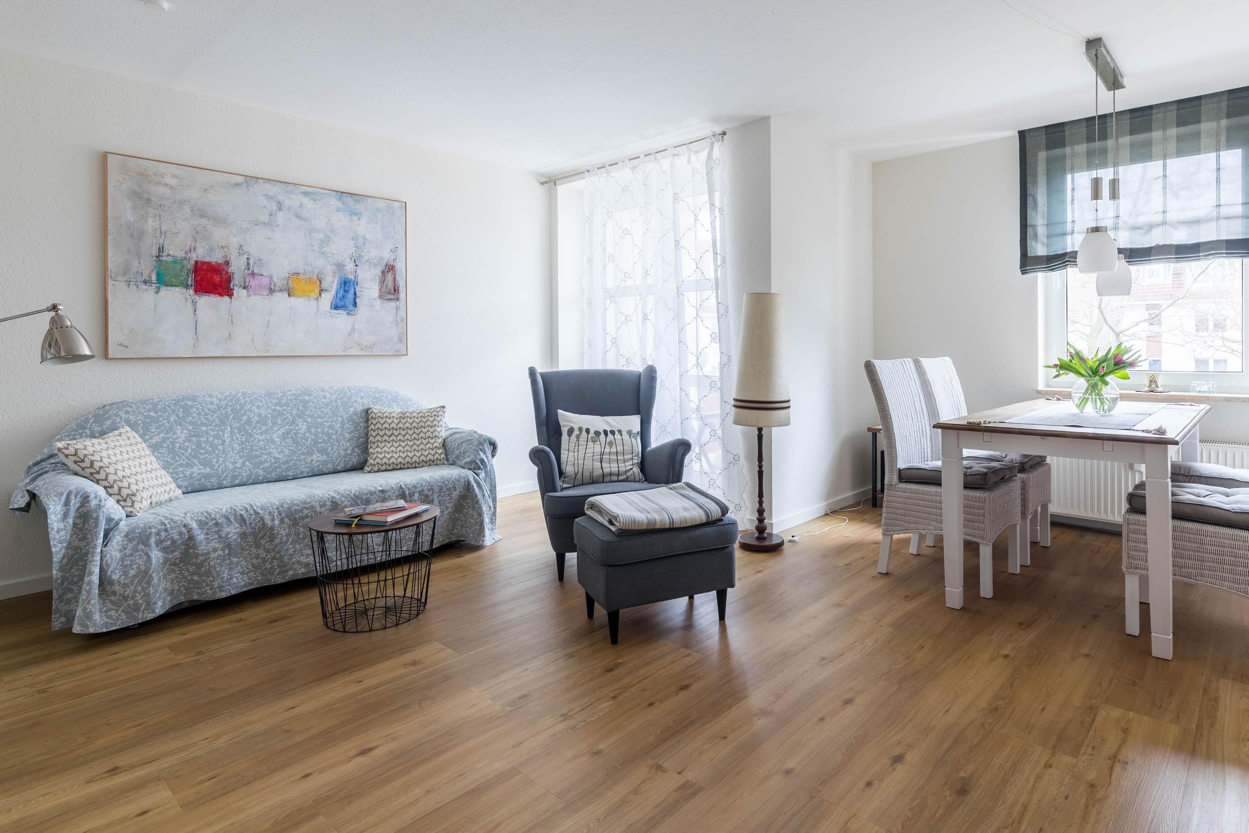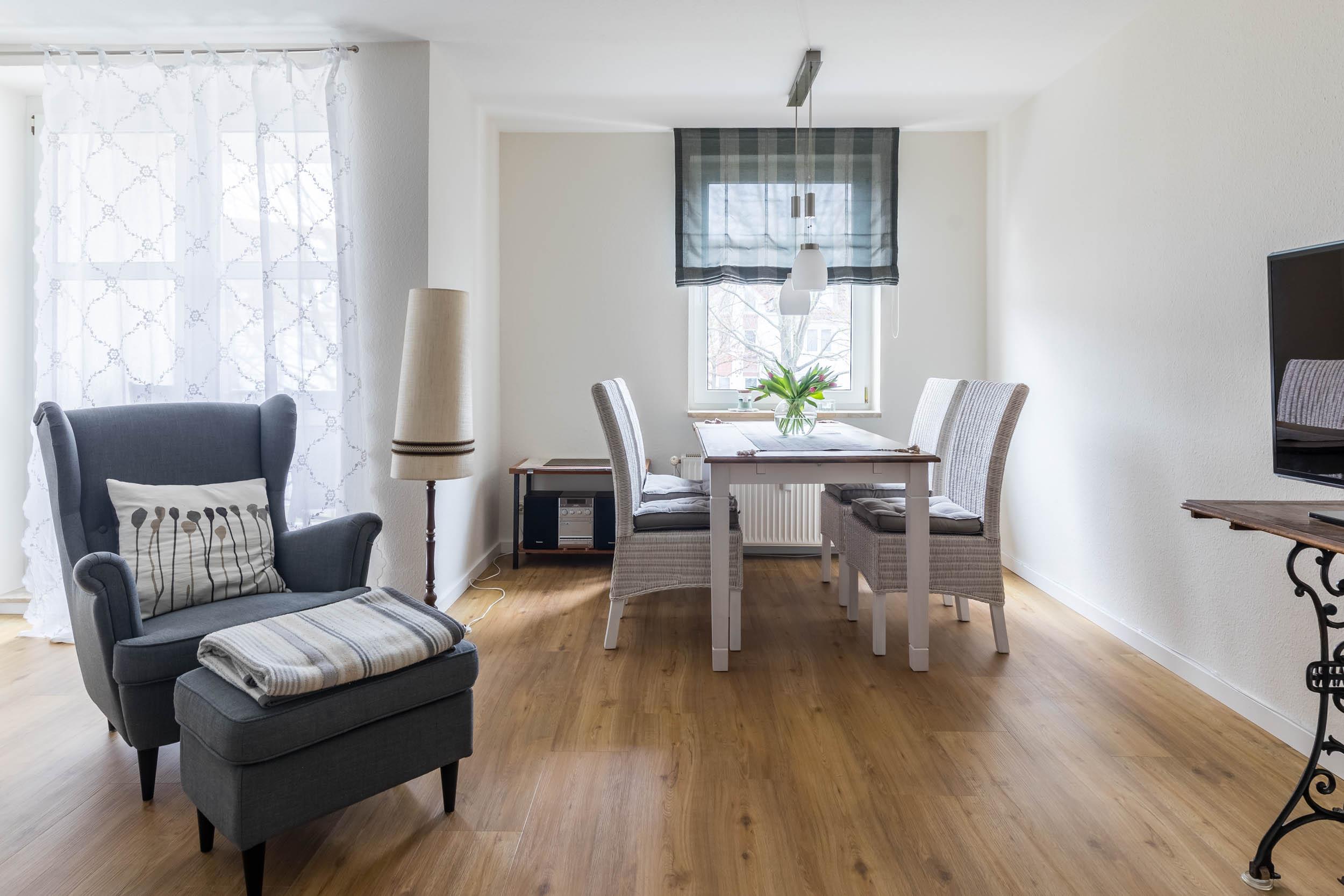 Die hell gestaltete und moderne 2-Zimmer-Ferienwohnung im 1. Obergeschoss bietet auf rund 55qm Wohnfläche Platz für 3 Gäste.