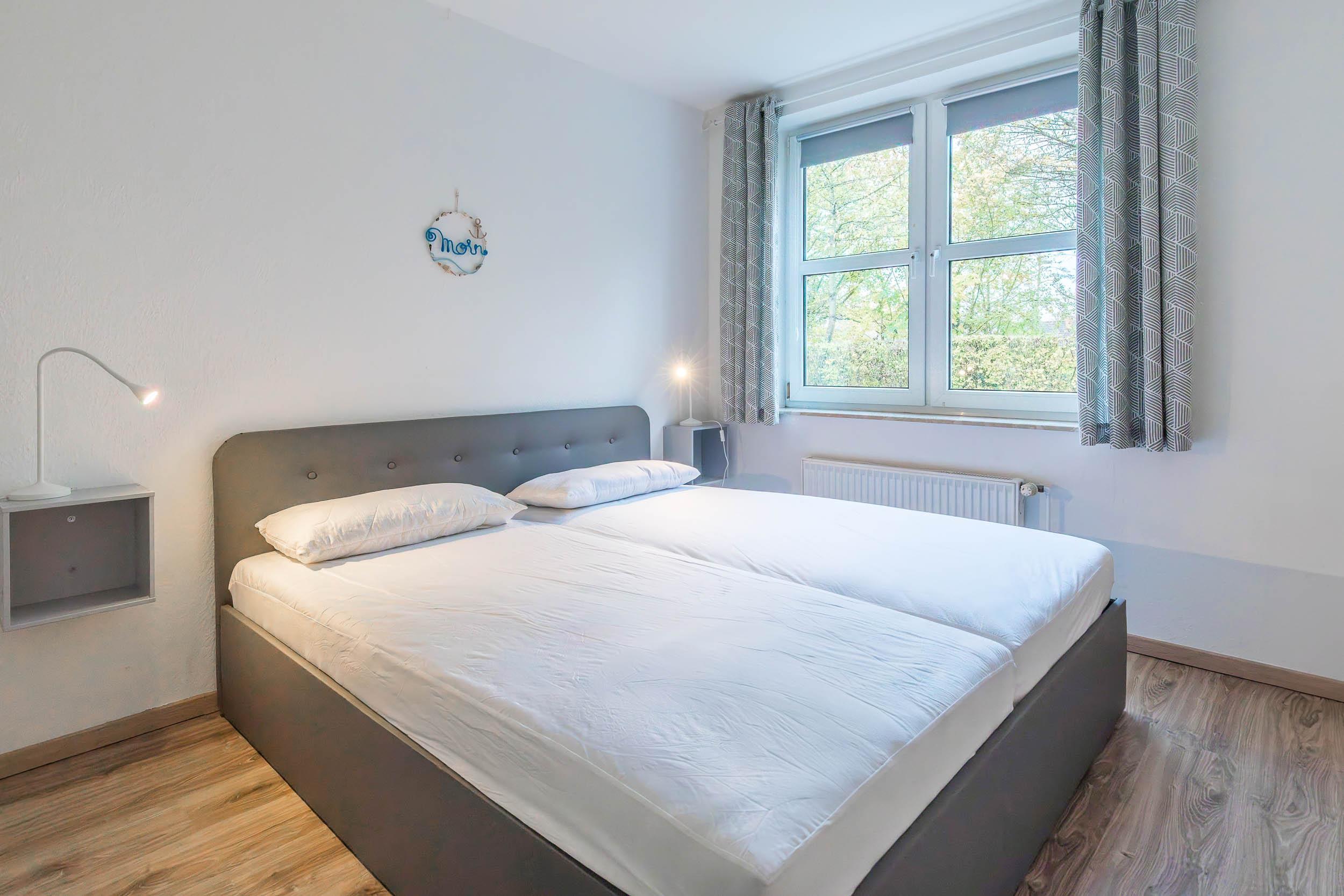 Es gibt ein separates Schlafzimmer. Dieses ist mit einem Doppelbett (180x200m) und einem Kleiderschrank für Ihre Garderobe bestückt.