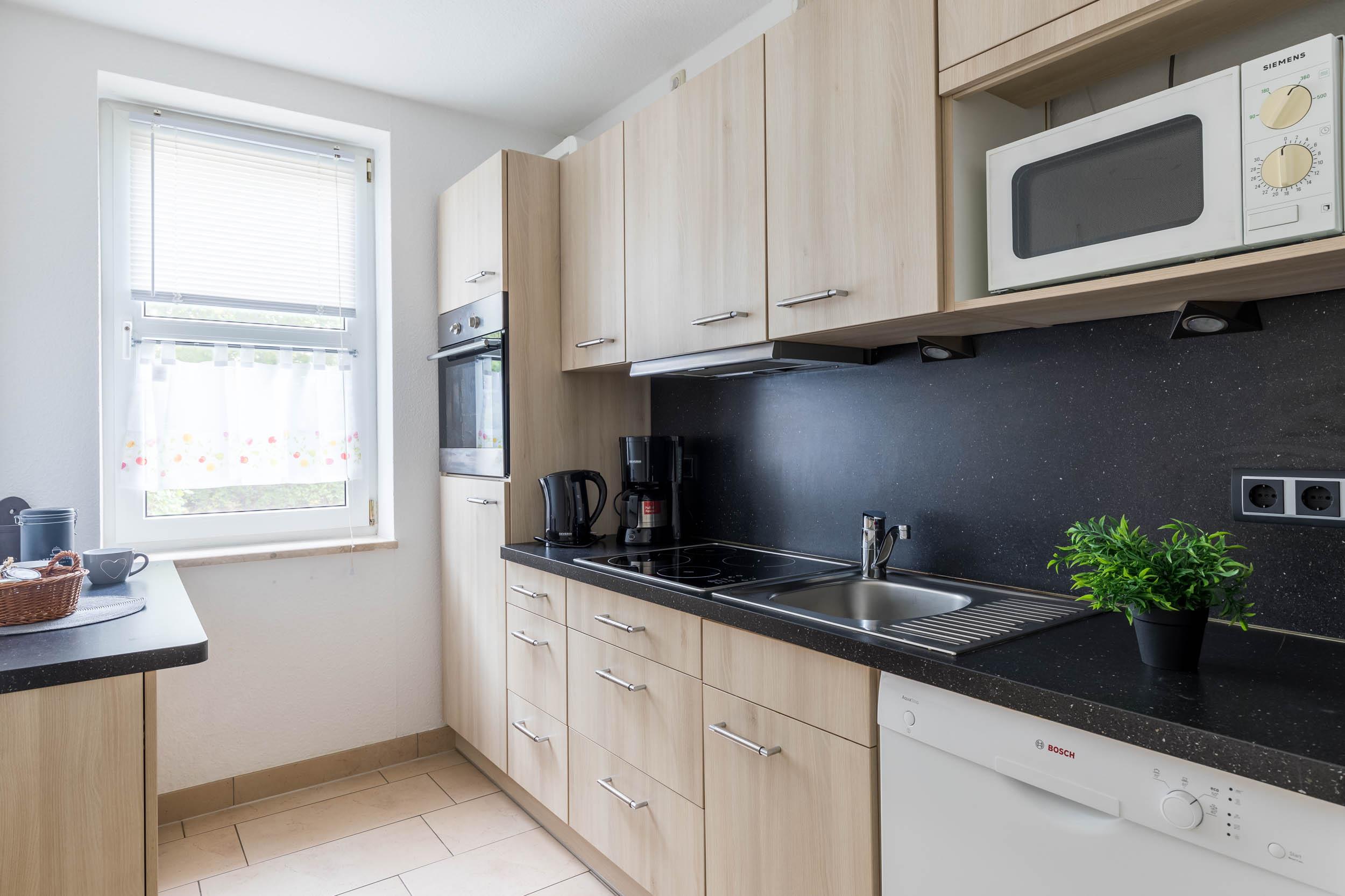 Die separate Küche bietet eine Vollausstattung, so sind hier u.a. Herd, Backofen, Kühlschrank mit Gefrierfach, Geschirrspüler uvm.