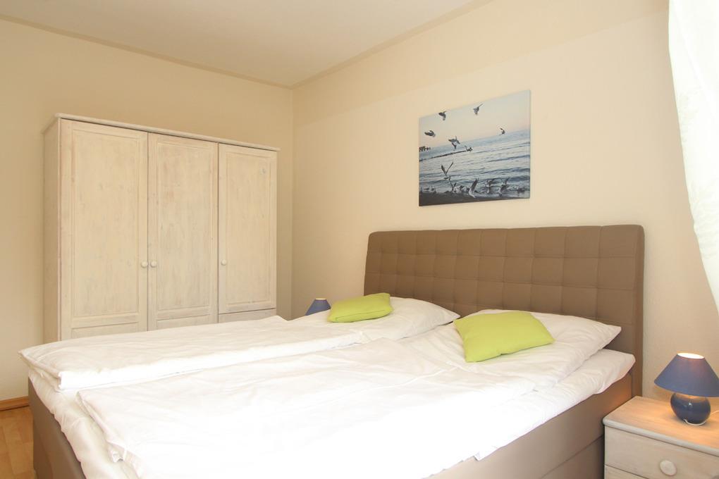 Das Schlafzimmer bietet ein bequemes Boxspringbett ( 180x200 ) und einen geräumigen Kleiderschrank, in dem Sie Ihre Urlaubsgarderobe unterbringen können.