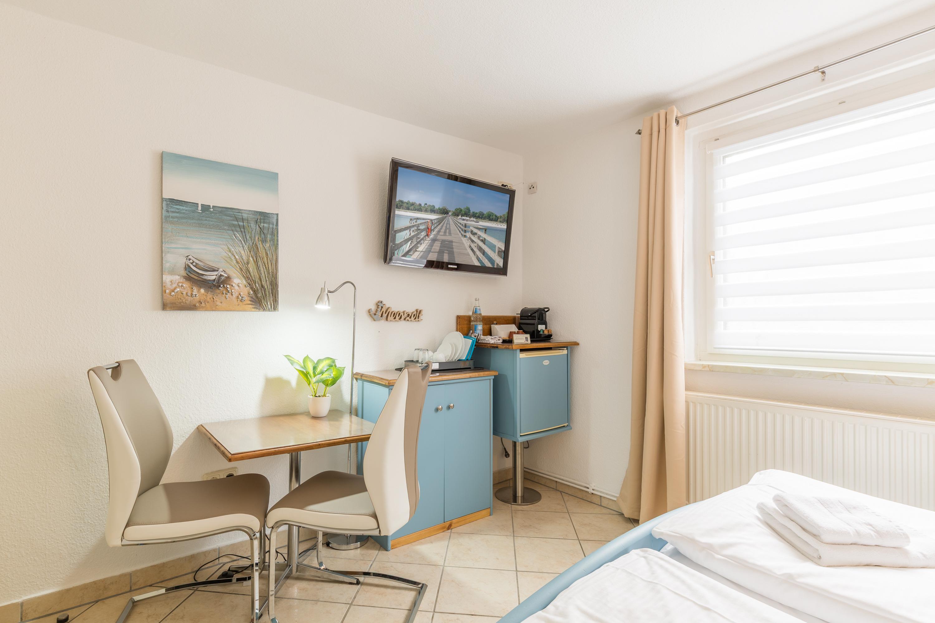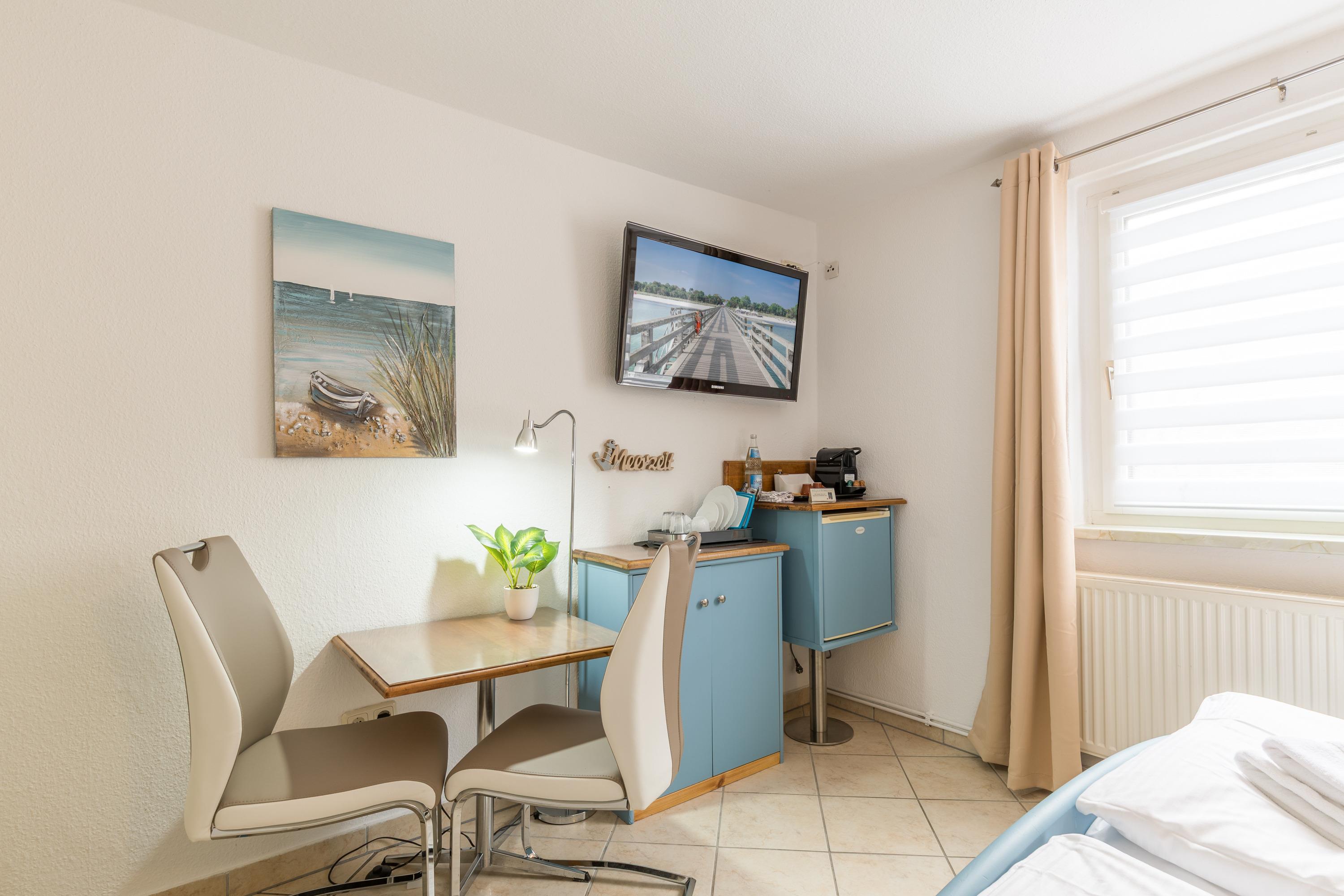 direkt an der Ostseeallee, unweit der Reha Kliniken. Zu dem Ferienzimmer gehört eine Terrasse mit Gartenmöbeln