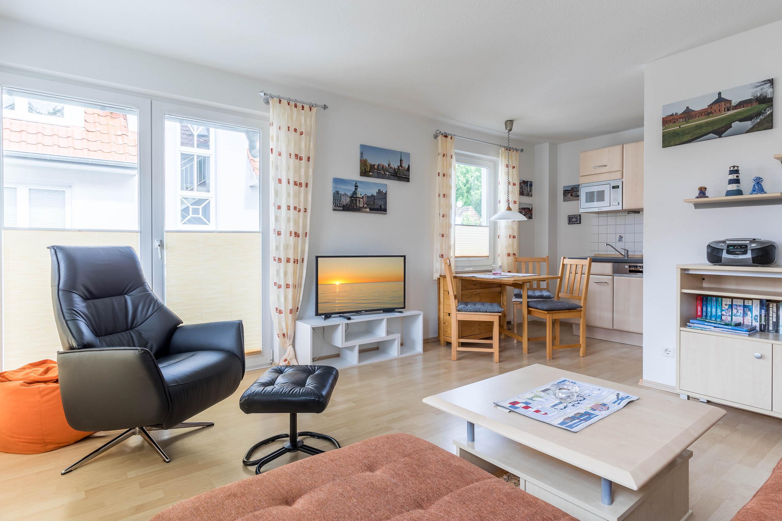 Für Wohlfühl-Ferien an der Ostsee ist dieses hell und behaglich gestaltete rund 49qm große 2-Zimmer-Appartement im 1.OG ideal. Es ist für zwei bis drei Personen + Kleinkind gedacht und bietet alles, was einen Aufenthalt angenehm macht.