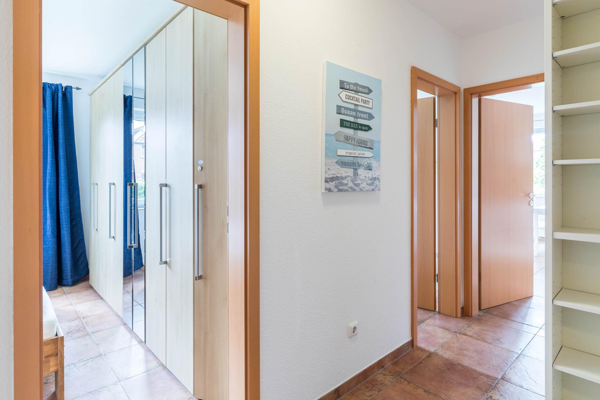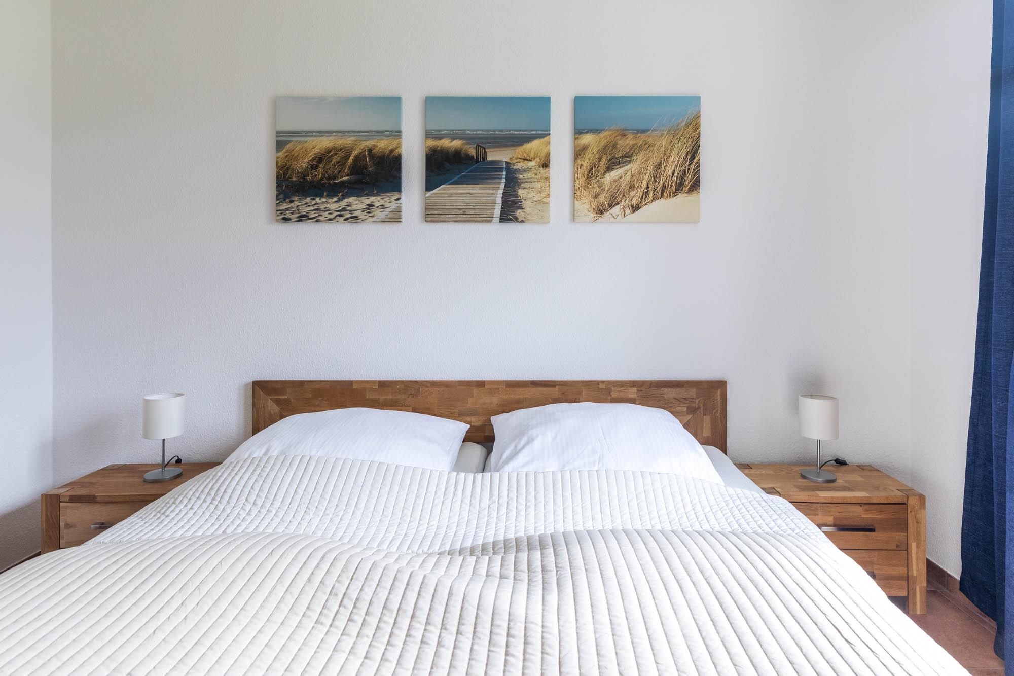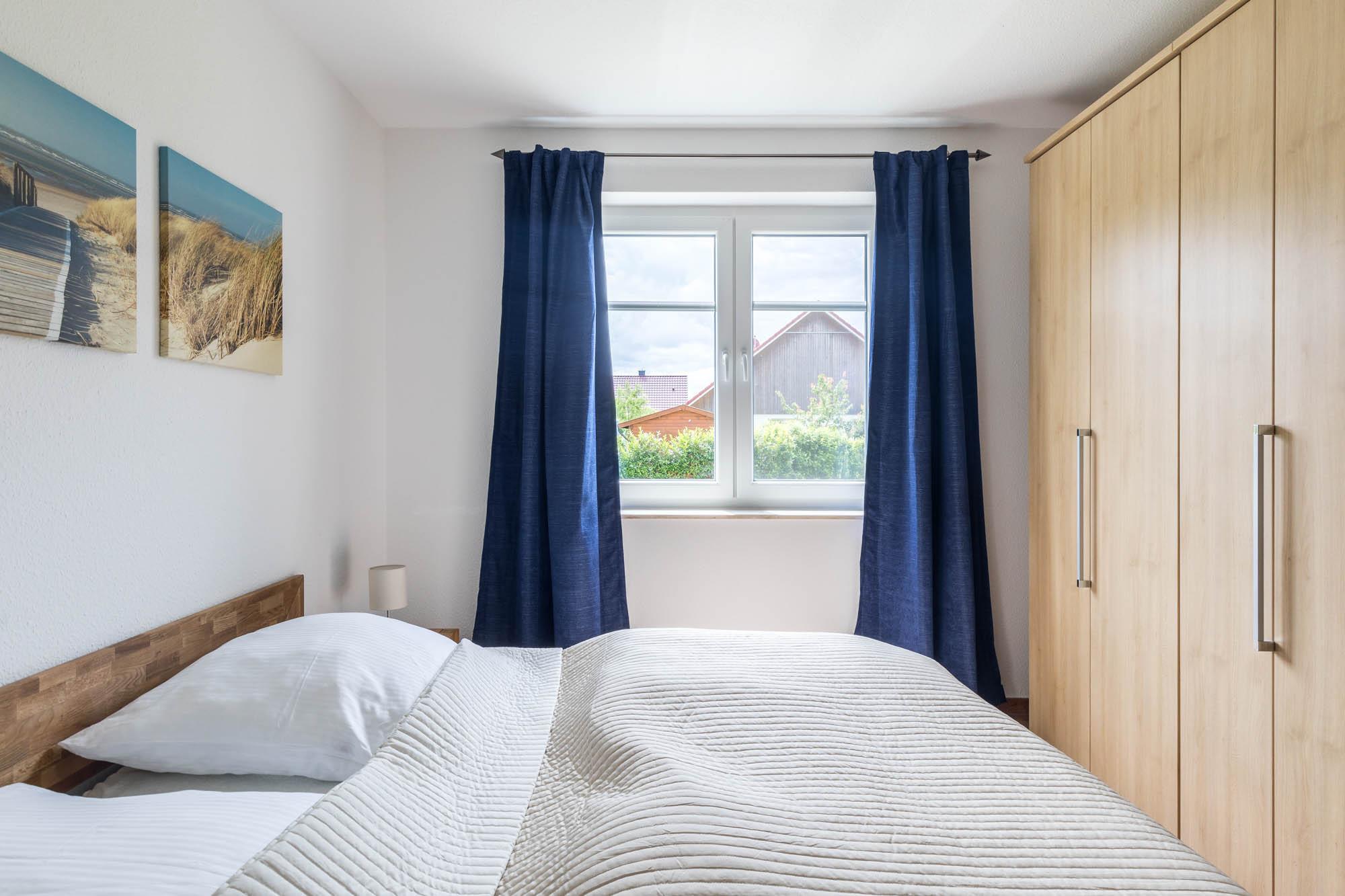 In dieser Ferienwohnung gibt es ein Schlafzimmer mit Doppelbett und großem Kleiderschrank für Ihre Garderobe. Das Gästezimmer verfügt über 2 Einzelbetten. Somit finden auch hier zwei Gäste erholsamen Schlaf.