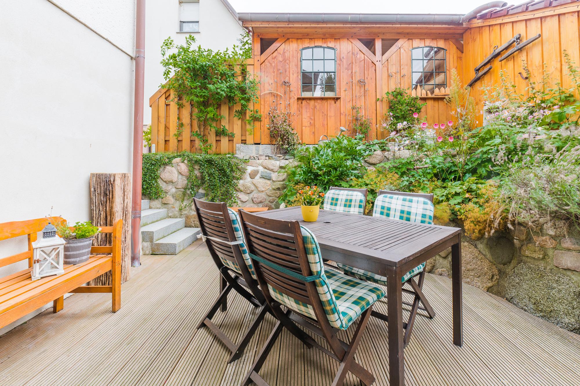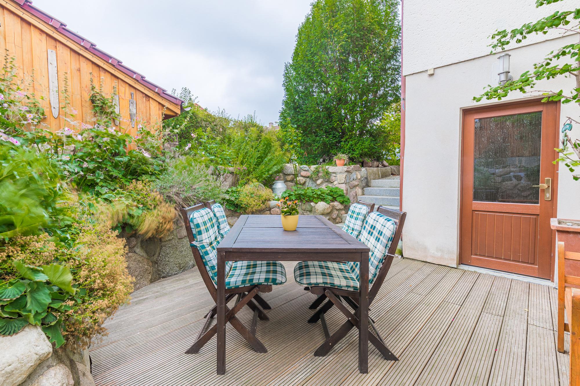 Die liebevoll eingerichtete 2-Zimmer-Wohnung im Zentrum von Boltenhagen ist etwa 800 m vom Strand entfernt. Sie bietet mit einer Schlafcouch im Wohnzimmer und einem Doppelbett im Schlafzimmer Platz für bis zu 4 Personen.. Die Wohnung verfügt über eine komplett ausgestattete offene Küchenzeile mit Backofen, Kühlschrank und Elektro-Herd, sowie ein Badezimmer mit Dusche, Handtuchheizung, Fön und WC. Die Terrasse mit Sitzecke und Grillmöglichkeit lädt zum Genießen und Entspannen ein. Haustiere sind in der Wohnung nicht erlaubt !