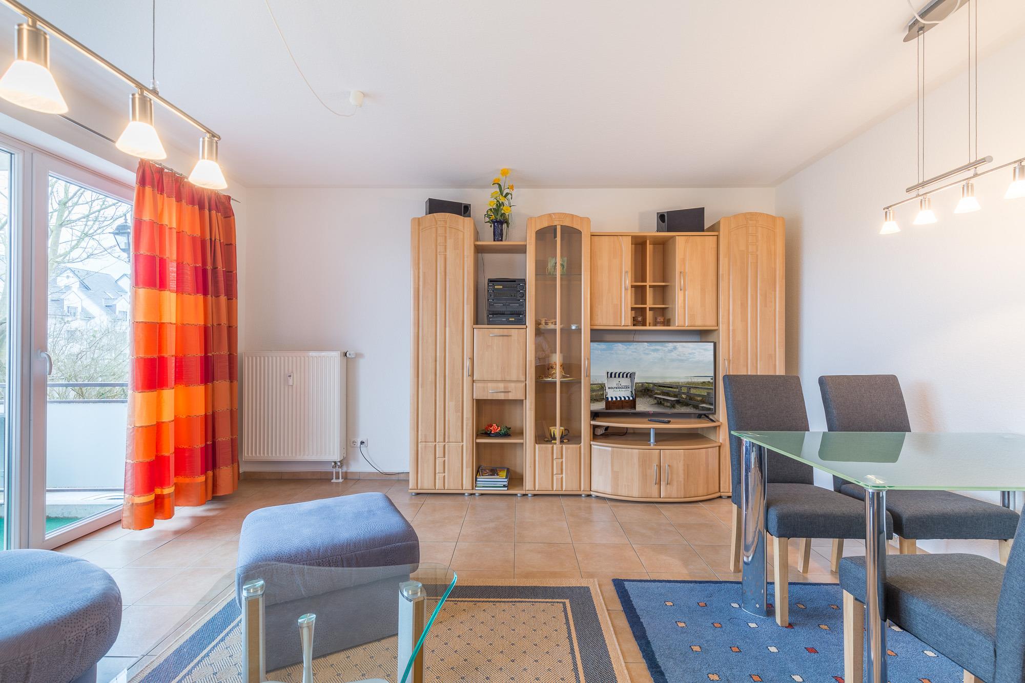 Die Ferienwohnung Kuck 01 im Hochparterre befindet sich im Zentrum von Boltenhagen und ist nur 100 m vom Strand entfernt. Die geräumige Wohnung bietet mit einem Wohnzimmer und zwei separaten Schlafzimmern Platz für bis zu 4 Personen.