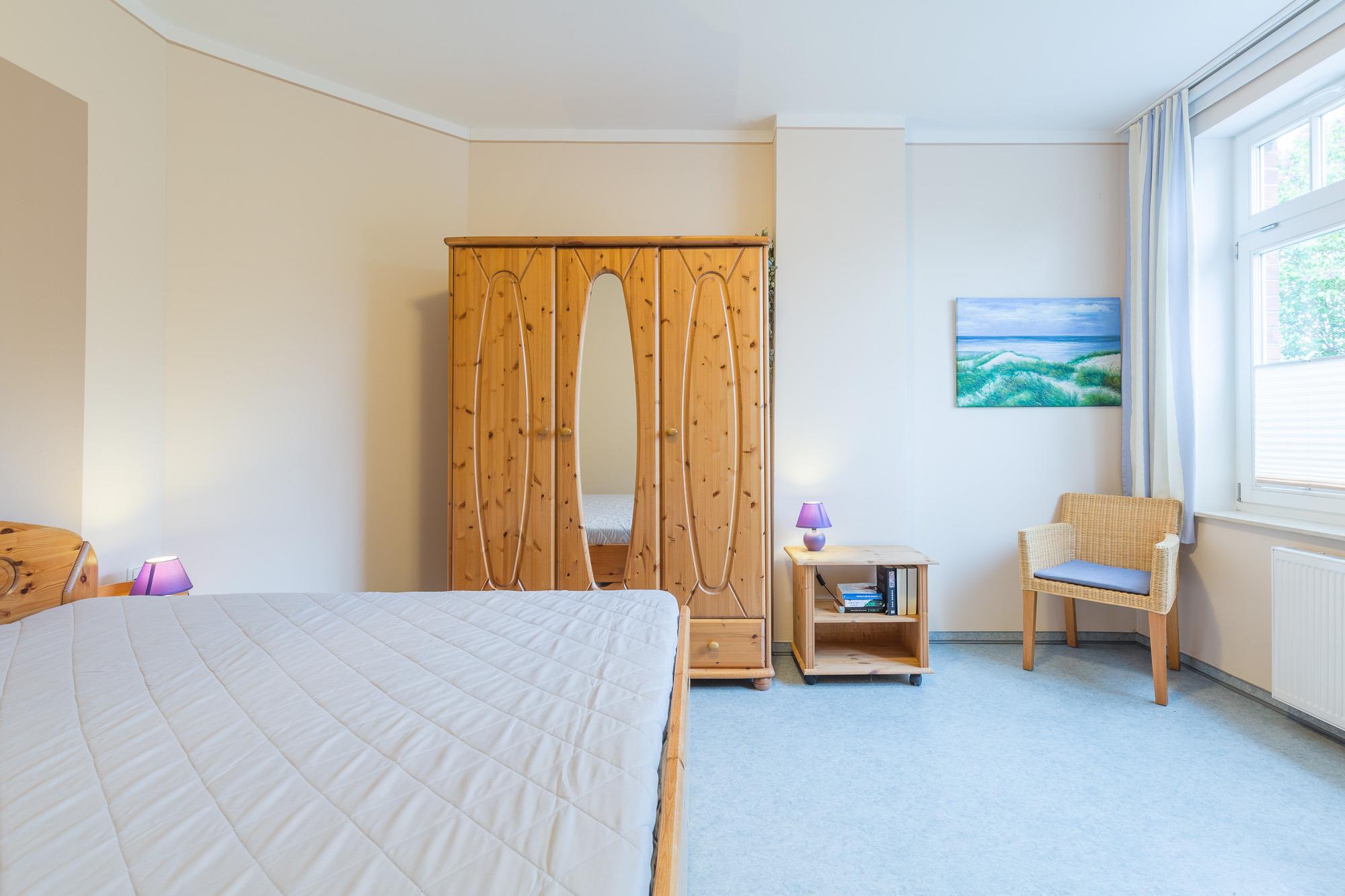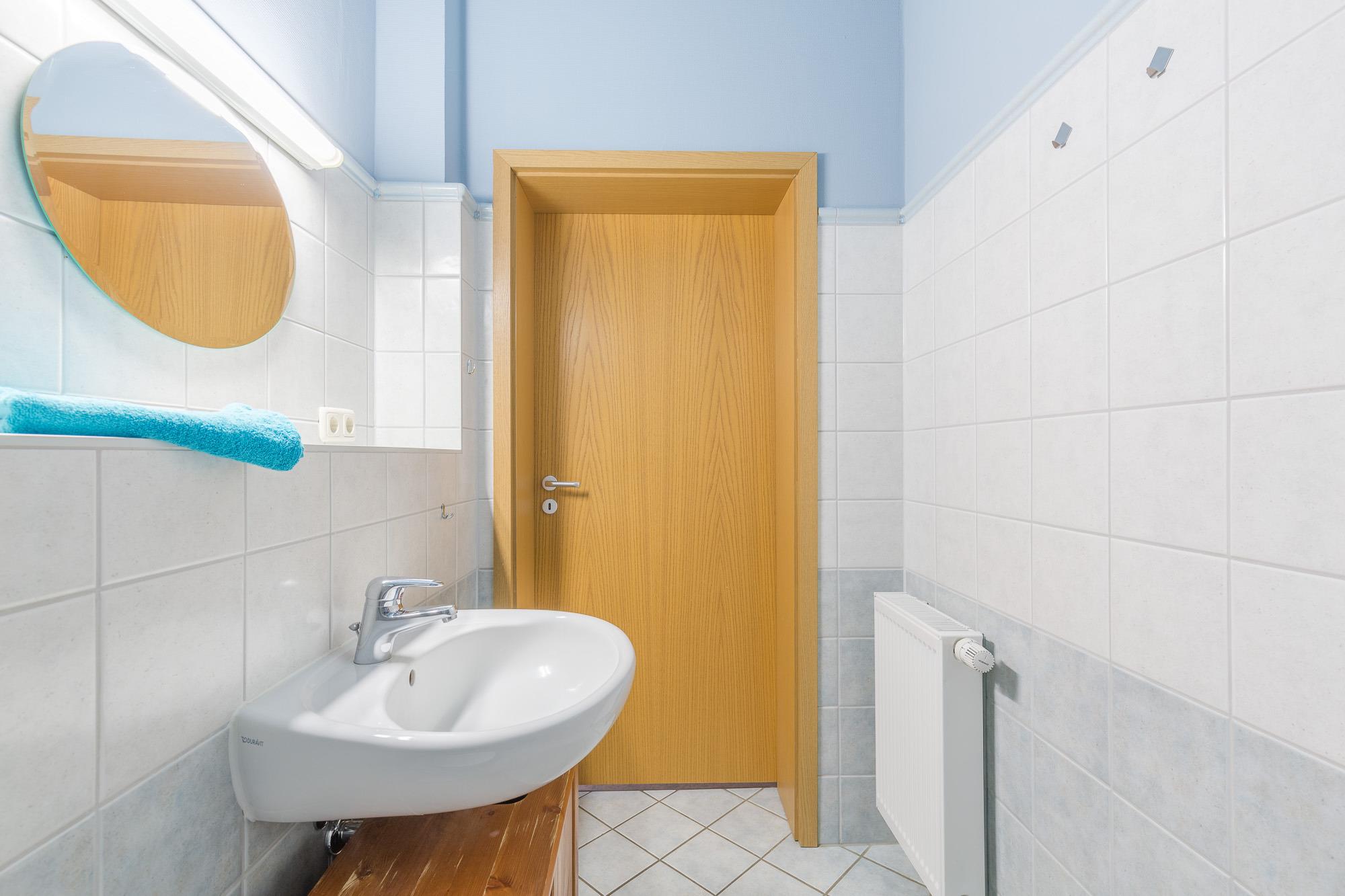 Die Wohnung 3 im Erdgeschoss bietet mit einem großen Wohnzimmer und einem separaten Schlafzimmer Platz für maximal 2 Personen. Sie verfügt über eine offene, komplette Küchenzeile im Wohnzimmer mit Geschirrspülmaschine, Backofen, 4-Platten-Herd und Kühlschrank sowie ein Badezimmer mit Dusche und WC. Den großen Garten mit Grillmöglichkeit können alle Gäste des Hauses gern nutzen. Ihren PKW können Sie auf dem Innenhof abstellen. Zusätzlich stellen wir Ihnen 2 Fahrräder kostenfrei zur Verfügung (Zustand und Verfügbarkeit ohne Rechtsanspruch). Das Mitbringen von Haustieren ist erlaubt. Hier berechnen wir einen Mehraufwand von 10,00 € pro Tag. Nutzung der Waschmaschine möglich.