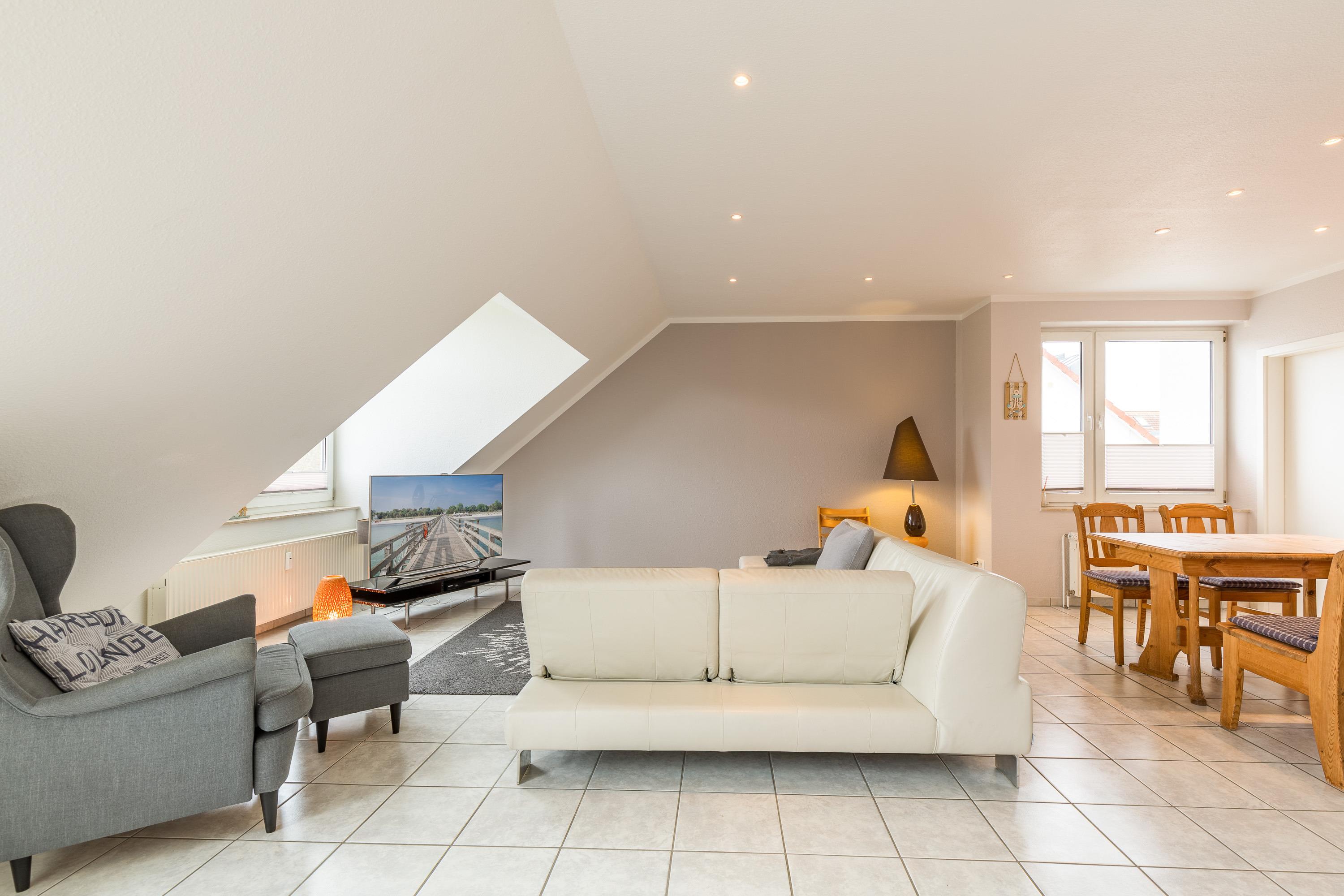 Die 3-Zimmer-Ferienwohnung "Ferienliebe Sünnslag - Sünnslag 016" befindet sich in ruhiger Lage in Boltenhagen in der Ferienanlage Sünnslag. "Sünnslag" bedeutet Sonnenlage. Die Wohnung ist eine Dachgeschoßwohnung ( 2. Etage) im Ahornweg 2 in Boltenhagen. Mit einer Größe von 78 m² bietet sie Platz für maximal 4 Personen. Das Appartement hat eine separate Küche, 2 Schlafzimmer, ein Duschbad und ein Gäste-WC.