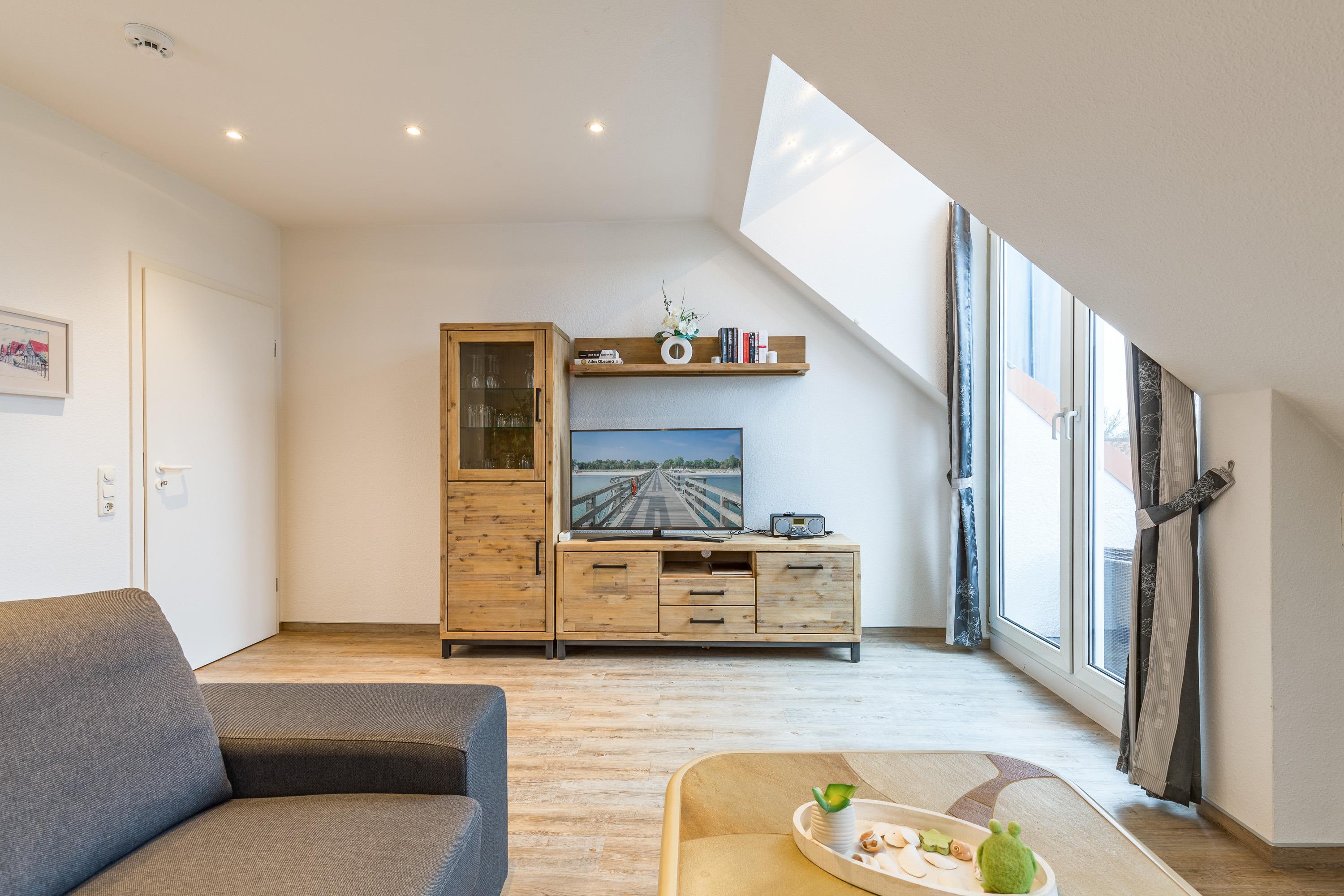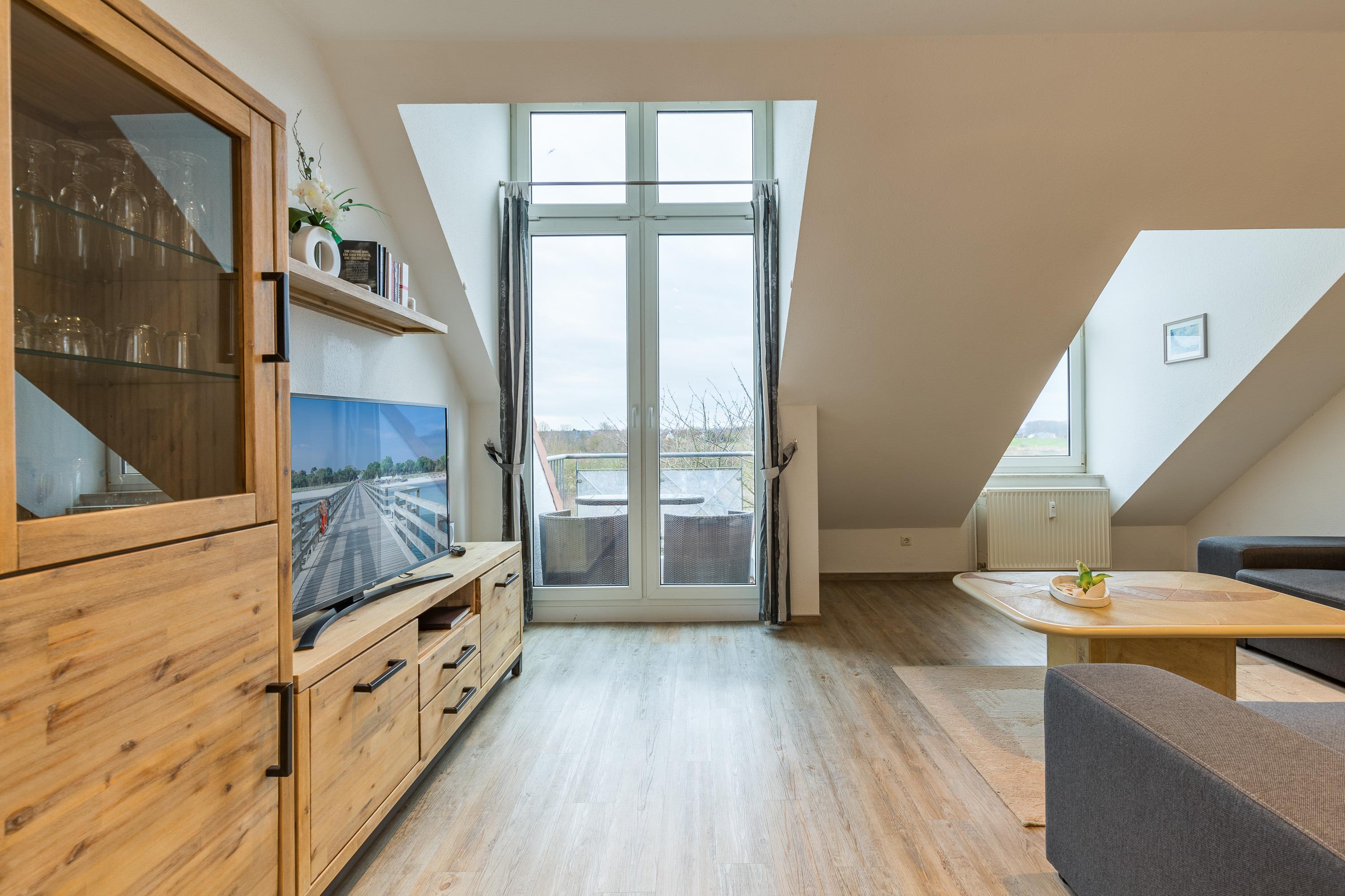 Die 3-Zimmer-Ferienwohnung "Sünnslag 034" befindet sich in ruhiger Lage in Boltenhagen in der Ferienanlage Sünnslag. "Sünnslag" bedeutet Sonnenlage. Die Wohnung ist eine Dachgeschoßwohnung ( 2. Etage) im Ahornweg 5 in Boltenhagen. Mit einer Größe von 60 m² bietet sie Platz für maximal 4 Personen. Das Appartement hat eine separate Küche, 2 Schlafzimmer und ein Duschbad.