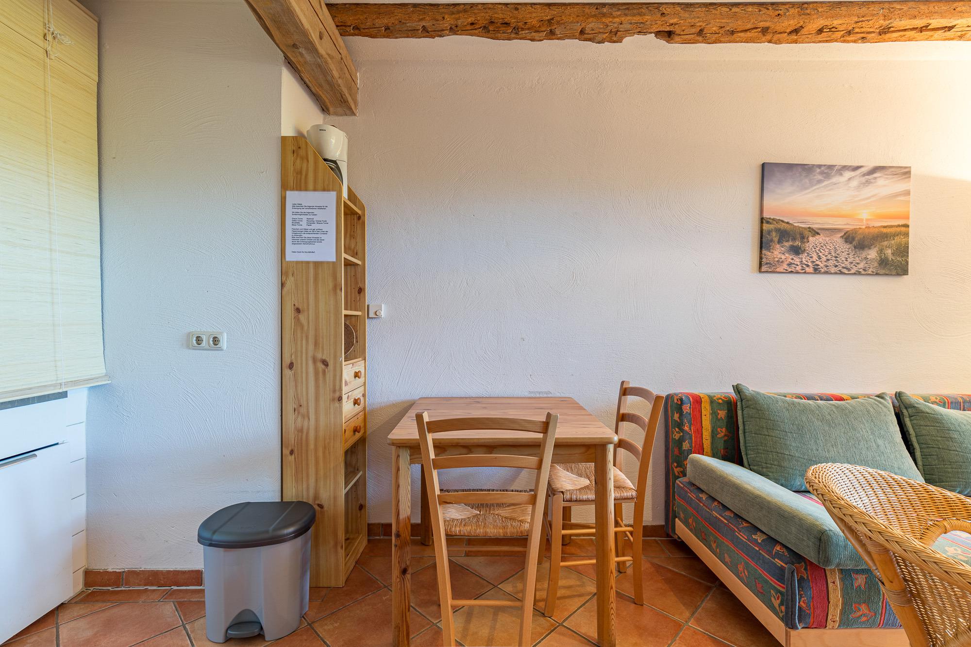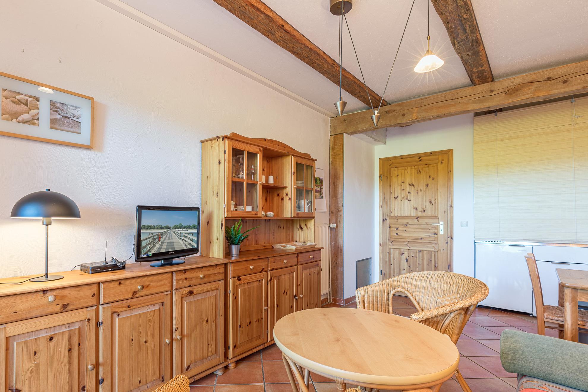 Über einen separaten Eingang gelangt man in die Wohnung 2 im Tarnewitzer Kamp. Die Wohnung ist mit einer Größe von 33 m² geeignet für 1 Person. In einer mit kombiniertem Wohn- und Schlafraum gestalteten Ferienwohnung befindet sich eine Doppelschlafcouch und für die Unterhaltung steht ein Fernseher mit Satelliten-Anschluss und ein Radio zur Verfügung.